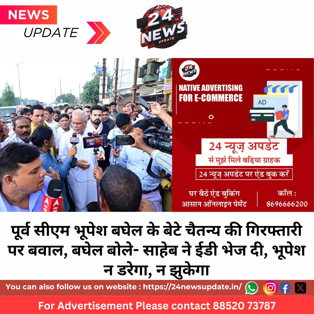 24 News Update रायपुर/भिलाई। छत्तीसगढ़ की राजनीति शुक्रवार को उस समय उबाल पर आ गई जब प्रवर्तन निदेशालय (ईडी) ने भिलाई में पूर्व मुख्यमंत्री भूपेश बघेल के बेटे चैतन्य बघेल को हिरासत में ले लिया। यह कार्रवाई राज्य में कथित 2,000 करोड़ रुपये के शराब घोटाले से जुड़ी मनी लॉन्ड्रिंग जांच के सिलसिले में की गई। हालांकि, म्क् की ओर से इस गिरफ्तारी को लेकर अभी तक कोई आधिकारिक पुष्टि नहीं की गई है।