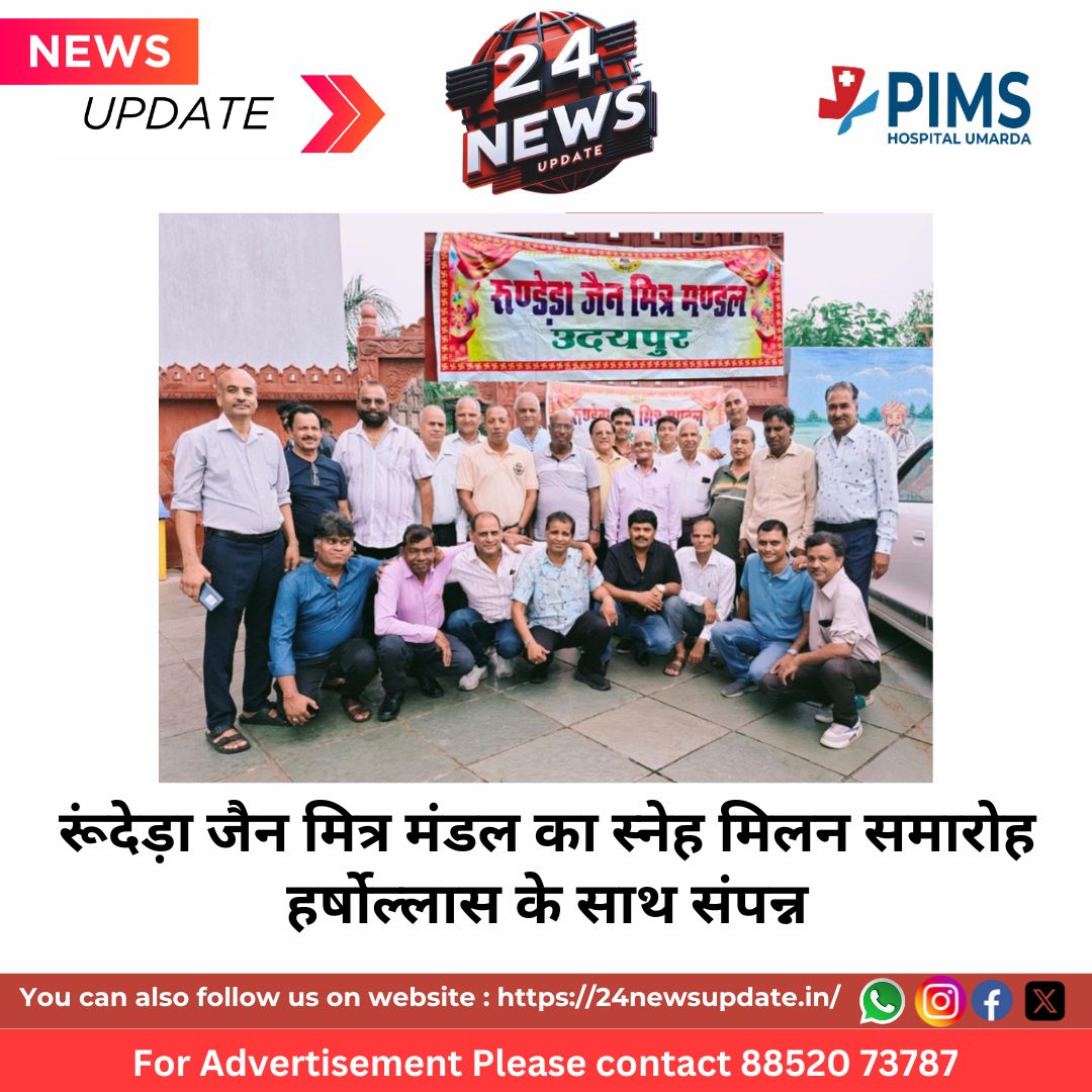 24 News Update उदयपुर। रूंदेड़ा जैन मित्र मंडल का वार्षिक स्नेह मिलन समारोह 9 अगस्त 2025 को राणाबक होटल रिसॉर्ट में अत्यंत उत्साह और आत्मीय वातावरण में संपन्न हुआ। यह आयोजन समाज में पारस्परिक भाईचारे, प्रेम और सौहार्द को प्रोत्साहित करने का एक उत्कृष्ट प्रयास साबित हुआ, जिसमें सभी आयु वर्ग के सदस्यों ने उत्साहपूर्वक भाग लिया। इस भव्य समारोह की अध्यक्षता श्री रतन खुर्दिया ने की। उन्होंने कहा कि यह स्नेह मिलन उदयपुर में निवासरत रूंदेड़ा समाज के परिवारों के बीच एकता को सुदृढ़ करने और आपसी संवाद को मजबूत बनाने का माध्यम है।