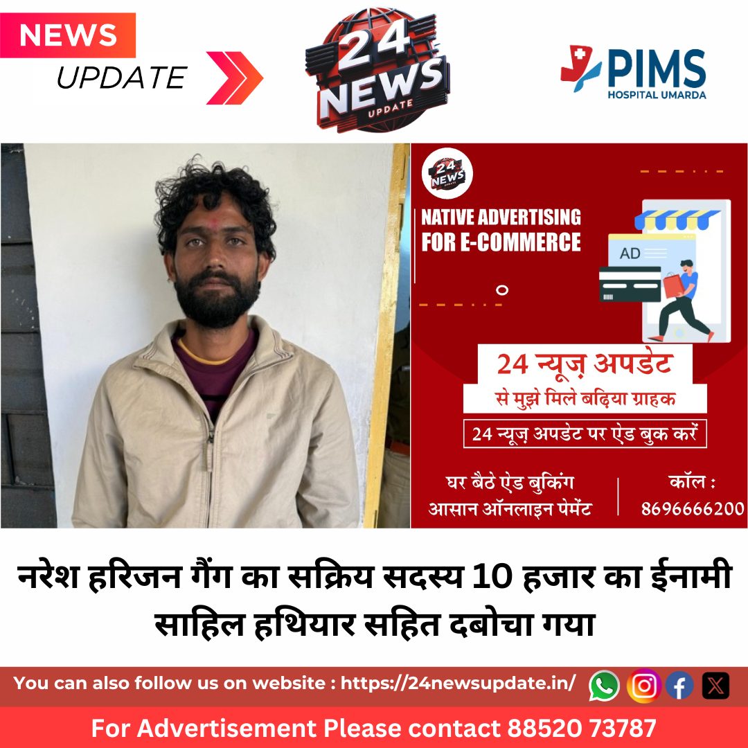 24 News Update उदयपुर। उदयपुर में संगठित अपराध पर रोक लगाने के लिए चल रहे विशेष अभियान के दौरान सूरजपोल थाना पुलिस ने एक बड़ी कार्रवाई करते हुए नरेश हरिजन गैंग से जुड़े कुख्यात बदमाश साहिल को गिरफ्तार कर लिया। यह वही साहिल है जिस पर दस हजार रुपये का इनाम घोषित था और जो थाने का हिस्ट्रीशीटर माना जाता है।
