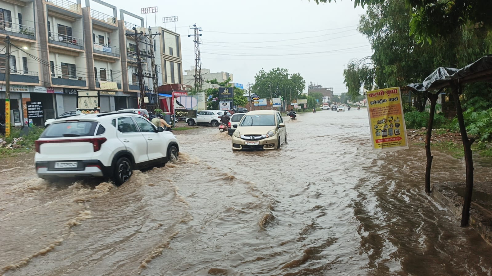 प्रशासन की अनदेखी से हर साल बिगड़ते हैं हालात, आमजन बेहालउदयपुर। जिले में रविवार रात से जारी मूसलाधार बारिश ने आम जनजीवन को अस्त-व्यस्त कर दिया है। सलूंबर मेगा हाईवे पर तीतरड़ी क्षेत्र में अम्बा माता घाटी के पास सोमवार सुबह भारी जलभराव हो गया, जिससे सड़कें नदी में तब्दील हो गईं और वाहन फंस गए।तस्वीरों में साफ देखा जा सकता है कि दोपहिया, चारपहिया वाहन चालक पानी में फंसते नजर आए। कई गाड़ियों को धक्का लगाकर बाहर निकालना पड़ा। एक जगह कार खराब हो गई, जिसे स्थानीय लोग bonnet खोलकर सुधारते दिखे।इस गंभीर स्थिति पर ज़िला परिषद सदस्य खयाली लाल सुहालका ने नाराज़गी जताते हुए कहा – “प्रशासन की लापरवाही के चलते पिछले कई वर्षों से आमजन बारिश के समय परेशान रहता है, लेकिन अब तक कोई ठोस कदम नहीं उठाया गया है। हर साल यह स्थिति बनती है, मगर समाधान के नाम पर कुछ नहीं किया जाता।”स्थानीय लोगों का भी कहना है कि यह समस्या नई नहीं है। हर बारिश में यही हाल होता है, लेकिन पानी निकासी की कोई व्यवस्था नहीं होने से सड़कें डूब जाती हैं।जनता ने प्रशासन से जल्द स्थायी समाधान की मांग की है, ताकि भविष्य में ऐसे हालातों से निजात मिल सके। Share this: Share on X (Opens in new window) X Share on Facebook (Opens in new window) Facebook More Email a link to a friend (Opens in new window) Email Share on WhatsApp (Opens in new window) WhatsApp Like this:Like Loading... Related Discover more from 24 News Update Subscribe to get the latest posts sent to your email. Type your email… Subscribe Post navigation सलूंबर थाने के नए अधिकारी हेमंत चौहान ने संभाला कार्यभार, कहा – कानून व्यवस्था बनी रहे, यही प्राथमिकता मेवाड़ जनशक्ति दल की जिला सलूंबर कार्यकारिणी का विस्तार, सावन के पहले सोमवार के पूर्व जलाभिषेक कर किया वृक्षा रोपण
