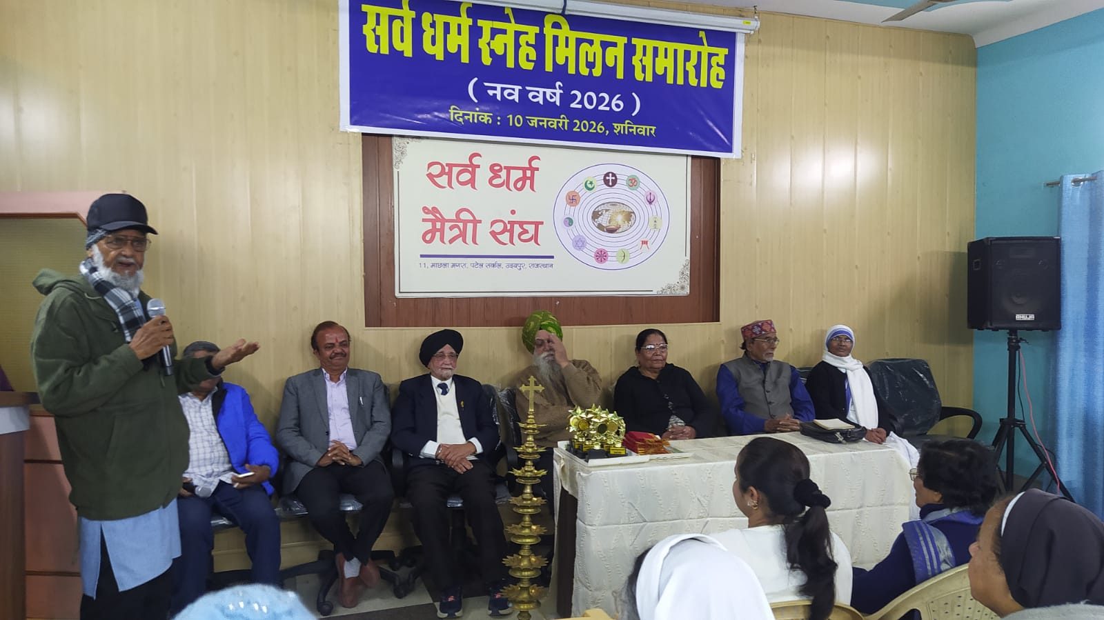 24 News Update उदयपुर। गणतंत्र दिवस से पूर्व आपसी प्रेम, भाईचारा एवं राष्ट्रीय एकता को बढाने के लिए सर्व धर्म मै़त्री संघ की पहल अभूतपूर्व रही। संघ की ओर से आयोजित स्नेह मिलन समारोह में सभी धर्मों के लोगों ने शरीक होकर एकता और सामन्जस्य को मजबूत किया।शहर के पटेल सर्किल स्थित सर्व धर्म मै़त्री संघ के तत्वावधान में सर्व धर्म स्नेह मिलन समारोह का आयोजन सौहार्दपूर्ण वातावरण में संपन्न हुआ। समारोह का उद्देश्य विभिन्न धर्मों के बीच आपसी प्रेम, भाईचारा एवं राष्ट्रीय एकता को सशक्त करना रहा। मैत्री संघ के निदेशक फादर राजूजी ने बताया कि कार्यक्रम में सभी धर्मों के प्रतिष्ठित धर्मावलंबियों ने अपने-अपने उद्बोधन के माध्यम से समाज में सद्भाव, शांति एवं राष्ट्रीय एकता पर सारगर्भित विचार प्रस्तुत किए। उन्होंने कहा कि सभी धर्मों के लोगों ने कहा कि आज के दौर में आपसी एकता और स्नेह बढानें की आवश्यकता है, क्योंकि वैश्विक तौर पर कई तरह के तनाव बढ रहे हैं। कार्यक्रम की अध्यक्षता वरिष्ठ शिक्षाविद विमला सनाढ्य ने की, जबकि मुख्य अतिथि के रूप में प्रख्यात साहित्यकार सरदार जगजीत सिंह निशात उपस्थित रहे। विशिष्ट अतिथियों में वरिष्ठ अधिवक्ता निर्मल कुमार पंडित, लक्ष्मण सोलंकी, डॉ. इकबाल सागर, डॉ. राजकुमार, सिस्टर जोना, सिस्टर लमिता, सुनिला, यासिन खान, उमर फारुख, ओमान योना, सिस्टर रानी, अनुपा, शैनिला, सिस्टर अनुकानाल, स्टेला, सिस्टर पूनम, मिस्टर एनिसिता, सिस्टर जुलियट, सिस्टर फ्रान्सिन, राजू यसोटा, पास्टर लक्ष्मण, सरदार सुजान सिंह, प्रमिला फर्नाडिस एवं हरिश तलरेजा सहित अनेक गणमान्यजन उपस्थित रहे। कार्यक्रम का संचालन प्रख्यात शायर मुश्ताक चंचल ने किया। समारोह का शुभारंभ दीप प्रज्वलन एवं सर्वधर्म प्रार्थना गीत के साथ हुआ। समापन अवसर पर फादर राजूजी ने सभी अतिथियों को नववर्ष की शुभकामनाएं देते हुए स्मृति चिन्ह एवं उपरणा भेंट कर सम्मानित किया। यह आयोजन उदयपुर में धार्मिक सौहार्द और सामाजिक एकता का सशक्त संदेश देता नजर आया। Share this: Share on X (Opens in new window) X Share on Facebook (Opens in new window) Facebook More Email a link to a friend (Opens in new window) Email Share on WhatsApp (Opens in new window) WhatsApp Like this:Like Loading... Related Discover more from 24 News Update Subscribe to get the latest posts sent to your email. Type your email… Subscribe Post navigation थानों के CCTV फुटेज पर बहानों की दीवार, RTI कानून की मूल भावना पर सीधा आघात राजस्थान विद्यापीठ ने अनियमितताओं के आरोप में डॉ. दिलीप सिंह चौहान को किया सस्पेंड