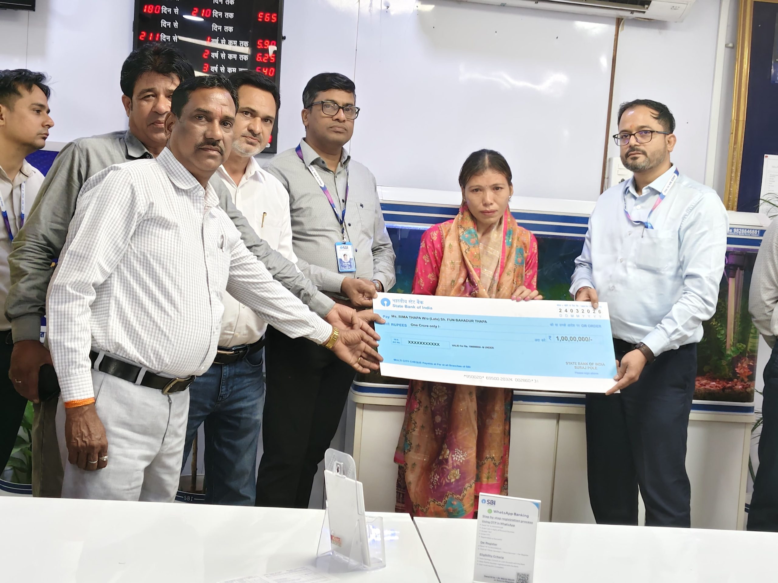24 News Update उदयपुर : भारतीय स्टेट बैंक सूरजपोल शाखा में मुख्य प्रबंधक अमित कुमार सिंह द्वारा सी एस पी एकाउंट के बीमा सुविधा के तहत मृत्यु दावा का बीमा लाभ एक करोड़ रुपये की राशि का चैक स्व. फन बहादुर थापा की पत्नी श्रीमती रीमा थापा को प्रदान किया गया । इस अवसर पर आर.आर. वी.पी. एन. उदयपुर के पदाधिकारी अशोक कुमार धानका (लेखाधिकारी, टी एंड सी), जगतार सिंह अधिशासी अभियंता (सिविल), जयंतीलाल प्रजापत प्रशासनिक अधिकारी (टी एंड सी) उपस्थित रहे, जिन्होंने बताया स्व. फन बहादुर थापा आर.आर. वी.पी. एन. में मिस्त्री सहायक अभियंता सिविल के पद पर कार्यरत थे जिनका भारतीय स्टेट बैंक में सैलरी एकाउंट था , पदधिकारियीं ने भारतीय स्टेट बैंक की सैलरी एकाउंट के बीमा सुविधा की सराहना करते हुए आभार प्रकट किया। श्रीमती रीमा थापा ने भारतीय स्टेट बैंक के प्रति कृतज्ञता जताते हुए कहा कि इस बीमा लाभ के जरिये बैंक ने उन्हें बच्चों की पढ़ाई एवं परिवार के जीवन यापन में बहुत बड़ा सहारा प्रदान किया है। Share this: Share on X (Opens in new window) X Share on Facebook (Opens in new window) Facebook More Email a link to a friend (Opens in new window) Email Share on WhatsApp (Opens in new window) WhatsApp Like this:Like Loading... Related Discover more from 24 News Update Subscribe to get the latest posts sent to your email. Type your email… Subscribe Post navigation यूडी टेक्स वसूलने में खुलकर मनमानी का पर्दाफाश,छोटों पर पहले हुआ डंडा, अब आई चुनींदा बड़ों की बारी!!! BN यूनिवर्सिटी–RMV में सीजिंग के बाद उठे सवाल सी जी एस टी साईक्लोत्थोन कल प्रात: फतेहसागर से होगा