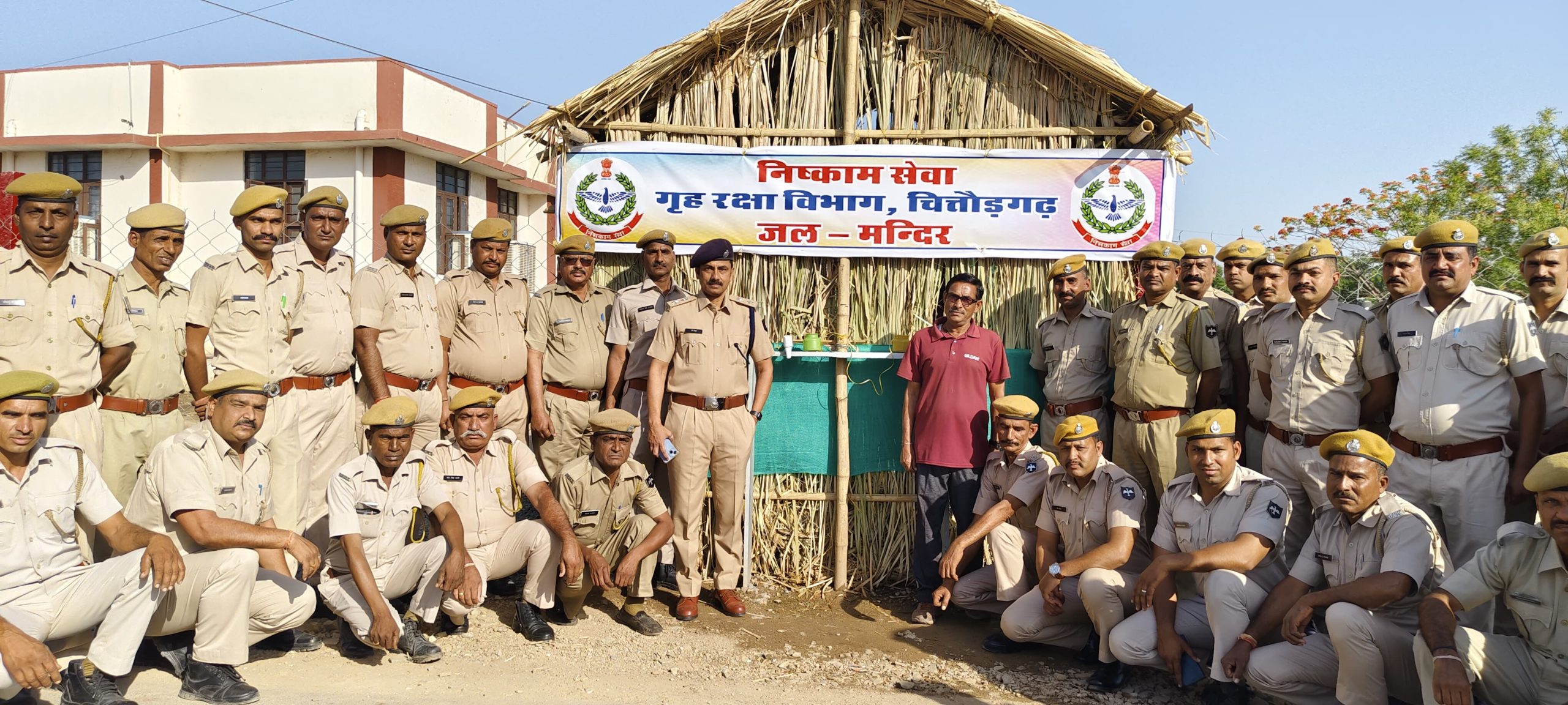24 News Update चित्तौड़गढ़। कमाण्डेन्ट रवि सिंह के निर्देशन में ’’ हमारा ध्येय- निष्काम सेवा ’’ की और एक और कदम आगे बढ़ाते हुए गृह रक्षा विभाग, चित्तौड़गढ़ के स्थाई स्टाफ व स्वयं सेवकां के द्वारा, कार्यालय कमाण्डेन्ट, गृह रक्षा प्रशिक्षण केन्द्र, चित्तौड़गढ़ परिसर जो कि धनेत रोड़ पर स्थित है में, इस प्रचंड़ गर्मी के मौसम को दृष्टिगत रखते हुए राहगीरों को प्यास से राहत प्रदान करने के लिए शीतल जल मन्दिर (प्याऊ) का अस्थाई निमार्ण किया गया जिसमें राहगीरों के लिए 24 घण्टे निःशुल्क शीतल जल की व्यवस्था की गई है।