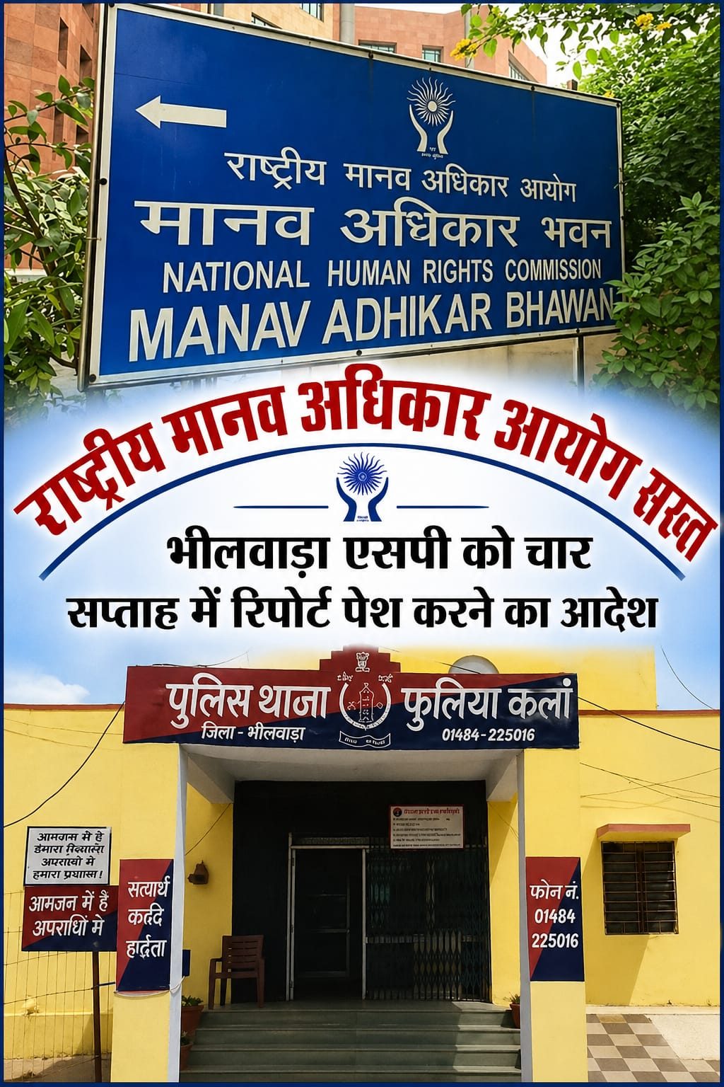 24 News Update भीलवाड़ा. भीलवाड़ा ज़िले नई दिल्ली राष्ट्रीय मानवाधिकार आयोग (NHRC) ने भीलवाड़ा जिले के फुलिया कलां थाने से जुड़े मानवाधिकार उल्लंघन के गंभीर मामले में सख्त रुख अपनाते हुए पुलिस अधीक्षक (SP) को 4 सप्ताह के भीतर विस्तृत जांच रिपोर्ट पेश करने के निर्देश दिए हैं।क्या है मामलामसूदा निवासी पीड़ित ‘प्रकाश’ ने आरोप लगाया है कि 23 फरवरी 2025 को फुलिया कलां थाना पुलिस उसे घर से उठाकर थाने ले गई, जहां उसके साथ मारपीट और अमानवीय व्यवहार किया गया।आरोप है कि थाने में उसे कपड़े उतरवाकर हवालात में बंद किया गया और रात के समय पुलिसकर्मियों ने थर्ड डिग्री का इस्तेमाल किया।इस दौरान पुलिसकर्मियों में जगदीश, महावीर और भारमल पर पैरों में लकड़ी बांधकर उल्टा लटकाने और रबर के पट्टों से बेरहमी से पिटाई करने के आरोप लगाए गए हैं। जिस पर मौके पर फुलिया कलां थाना एसएचओ माया बैरवा भी मौजूद थींपीड़ित के अनुसार, इस मारपीट में उसके कान में गंभीर चोट आई, जिससे सुनने की क्षमता प्रभावित हुई।आयोग के सख्त निर्देशआयोग ने मामले को गंभीर मानते हुए निर्देश दिए कि:जांच निष्पक्ष और कानून के अनुसार की जाएपीड़ित की भागीदारी सुनिश्चित होहर कार्रवाई की जानकारी पीड़ित पक्ष को दी जाएपूरी रिपोर्ट 4 सप्ताह में आयोग को भेजी जाएशिकायत और कार्रवाईमानवाधिकार कार्यकर्ता राजकुमार गर्ग ने 17 मार्च 2025 को इस मामले में शिकायत दर्ज कराई थी। 23 अप्रैल 2026 की सुनवाई के बाद आयोग ने सीधे हस्तक्षेप करते हुए पुलिस प्रशासन को जवाबदेह बनाया।बढ़ा दबावNHRC के आदेश के बाद फुलिया कलां थाना और भीलवाड़ा पुलिस प्रशासन पर जवाबदेही का दबाव बढ़ गया है। आदेश की अवहेलना होने पर संबंधित अधिकारियों को व्यक्तिगत रूप से आयोग के समक्ष पेश होना पड़ सकता है। Share this: Share on X (Opens in new window) X Share on Facebook (Opens in new window) Facebook More Email a link to a friend (Opens in new window) Email Share on WhatsApp (Opens in new window) WhatsApp Like this:Like Loading... Related Discover more from 24 News Update Subscribe to get the latest posts sent to your email. Type your email… Subscribe Post navigation साफ़-सफाई की मांग उठाना पड़ा भारी: सरदारपुरा में शिकायतकर्ता को ग्राम विकास अधिकारी के द्वारा जान से मारने की धमकी भीषण गर्मी में बिजली की आंख-मिचौनी: फुलिया कला में 5-5 घंटे की कटौती से जनजीवन अस्त-व्यस्त, बिना सूचना कटौती से लोग परेशान, ग्रामीण क्षेत्रों में हालात और गंभीर—बच्चे, बुजुर्ग व मरीज सबसे अधिक प्रभावित