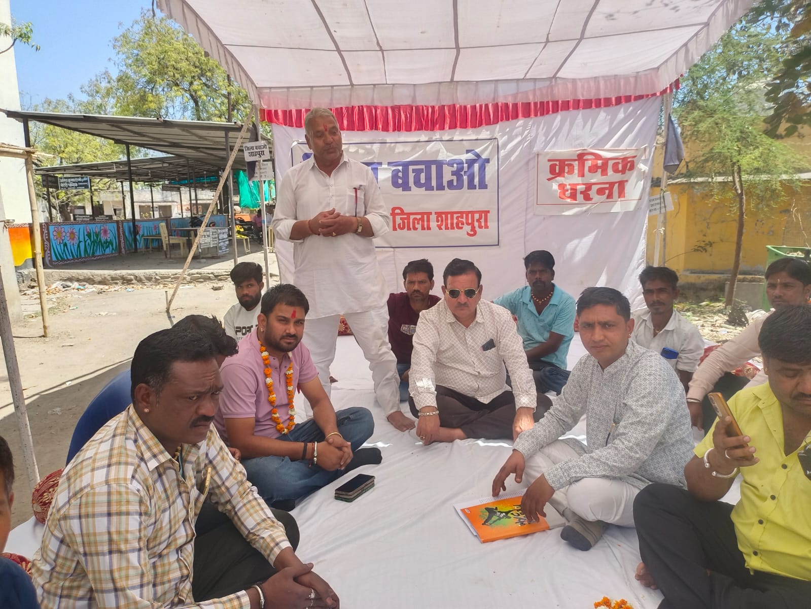 जिला समाप्त करने के विरोध में क्रमिक अनशन धरने पर गन्ना चरखी जूस एसोसिएशन शाहपुरा के सदस्य बैठे 24 news update शाहपुरा. शाहपुरा को शाहपुरा जिला बचाओ संघर्ष समिति के द्वारा उपखंड कार्यालय शाहपुरा के बाहर क्रमिक अनशन धरने पर गन्ना चरखी जूस एसोसिएशन शाहपुरा के सदस्य शांतिपूर्ण तरीके से नारेबाजी करते हुए अध्यक्ष जसमेंन्दर सिंह चौहान के नेतृत्व में धरना स्थल पर पहुंचकर शाहपुरा जिले को समाप्त करने के विरोध में प्रदर्शन किया और शाहपुरा को वापस जिले का दर्जा देने की मांग का ज्ञापन राज्यपाल के नाम संघर्ष समिति संयोजक रामप्रसाद जाट व महासचिव कमलेश मुंडेतिया को दिया । गन्ना चरखी जूस एसोसिएशन शाहपुरा के अध्यक्ष जसविंदर सिंह चौहान किशन कहार धनराज माली ओमप्रकाश सांवरलाल भगवान राजेश प्रजापत सुरेश कहार मुकेश कुम्हार रोडू लाल जगदीश कुमार नरेंद्र सिंह चौहान जोधराज सिंह राजकुमार खटीक लादू लाल खारोल सहित कई सदस्य क्रमिक अनशन धरने बैठे जिनका संघर्ष समिति की ओर से माल्यार्पण कर स्वागत किया गया। सभी वक्ताओं ने एक ही स्वर में सरकार से शाहपुरा को वापस जिला बनाने की मांग की तथा गन्ना चरखी जूस संगठन के पूर्व अध्यक्ष भगवान सिंह चौहान के विगत दिनों असामयिक निधन पर श्रद्धांजलि दी गई। गन्ना चरखी संगठन के अध्यक्ष जसमेन्द्र सिंह चौहान ने जिला बचाओ संघर्ष समिति समिति को ग्यारह हजार रुपये नगद सहयोग दिया। इस मौके पर संघर्ष समिति सदस्य दुर्गा प्रसाद शर्मा राजेंद्र बोहरा धनराज जीनगर सुगन लाल बोहरा अभिभाषक संस्था उपाध्यक्ष गजेंद्र प्रताप सिंह मौजूद रहे। शाहपुरा जिला बचाओ संघर्ष समिति महासचिव व संस्था सहसचिव कमलेश मुंडेतिया ने बताया कि शाहपुरा जिला बचाओ संघर्ष समिति को सामाजिक संगठनों और आमजन का लगातार समर्थन मिल रहा है आमजन की भावनाओं को देखते हुए आंदोलन निरंतर अनवरत जारी रहेगा तथा 1अप्रेल को भीम आर्मी शाहपुरा के सदस्य अध्यक्ष के नेतृत्व में क्रमिक अनशन धरने पर बैठेंगे। Share this: Share on X (Opens in new window) X Share on Facebook (Opens in new window) Facebook More Email a link to a friend (Opens in new window) Email Share on WhatsApp (Opens in new window) WhatsApp Like this:Like Loading... Related Discover more from 24 News Update Subscribe to get the latest posts sent to your email. Type your email… Subscribe Post navigation हिन्दू एवं मुस्लिम भाइयों के द्वारा ईद के पावन पर्व को बड़े हर्षो उल्लास,भाईचारे के साथ मनाया गया व अमन चैन की मांगी दुआएं अजमेर दरगाह में तलवारों के साथ घुसा युवक, लोगों में मची अफरा-तफरी