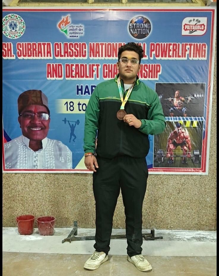 24 News Update उदयपुर। इंडियन पावरलिफ्टिंग फेडरेशन के तत्वावधान में हरिद्वार में आयोजित नेशनल पावरलिफ्टिंग चैंपियनशिप में उदयपुर के शिवांग हल्देनिया ने अपनी प्रतिभा का लोहा मनवाते हुए कांस्य पदक (Bronze Medal) हासिल किया है। इस उपलब्धि के साथ उन्होंने न केवल अपने परिवार का, बल्कि पूरे जिले का नाम राष्ट्रीय स्तर पर रोशन किया है।