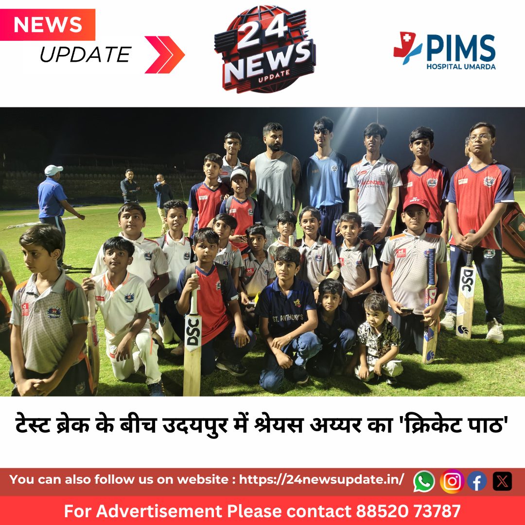 24 News Update Udaipur. ​भारतीय क्रिकेट टीम के मध्यक्रम के बल्लेबाज़ श्रेयस अय्यर ने टेस्ट क्रिकेट से मिले ब्रेक का सदुपयोग उदयपुर की शांत आबोहवा में किया। वे दो दिनों तक शहर के गोवर्धन विलास स्थित होटल शिकारबाड़ी में ठहरे रहे और पूरी तरह से रिलैक्स होने के बजाय उन्होंने अपनी फिटनेस और खेल पर ध्यान केंद्रित रखा।