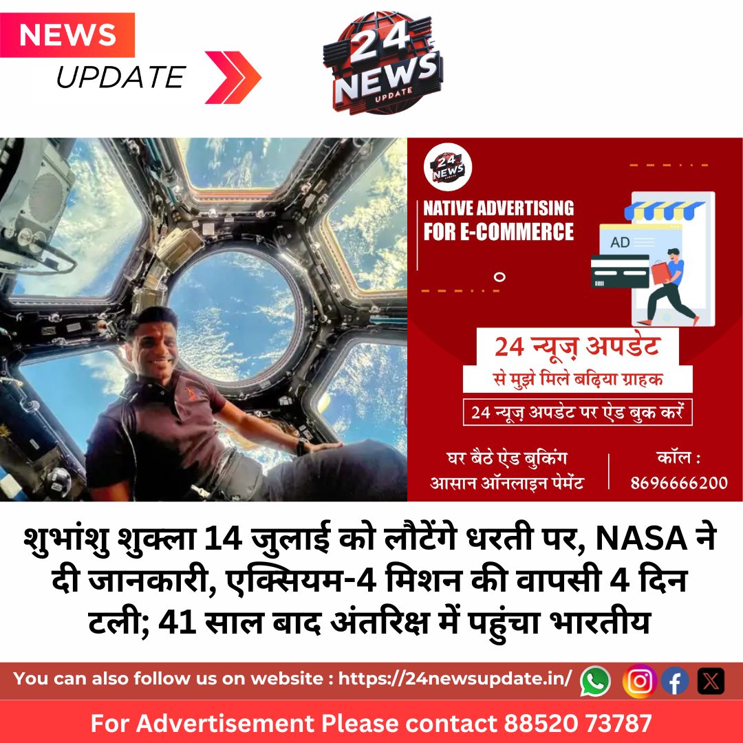 24 News Update टेक्सास/नई दिल्ली। भारतीय वायुसेना के ग्रुप कैप्टन और देश के दूसरे अंतरिक्ष यात्री शुभांशु शुक्ला अब 14 जुलाई को अंतरिक्ष से धरती पर लौटेंगे। अमेरिकी स्पेस एजेंसी नासा ने गुरुवार को यह घोषणा की। वे एक्सियम-4 मिशन का हिस्सा हैं, जिसके तहत उन्हें तीन अन्य एस्ट्रोनॉट्स के साथ इंटरनेशनल स्पेस स्टेशन (ISS) भेजा गया था। यह मिशन 10 जुलाई को समाप्त होना था, लेकिन अब इसे 4 दिन बढ़ाकर 14 जुलाई को वापसी निर्धारित की गई है।अंतरिक्ष में भारत की नई पहचानशुभांशु शुक्ला की अंतरिक्ष यात्रा ऐतिहासिक है, क्योंकि वे 41 साल बाद अंतरिक्ष में पहुंचे दूसरे भारतीय नागरिक हैं। इससे पहले 1984 में राकेश शर्मा सोवियत मिशन के तहत अंतरिक्ष गए थे। शुभांशु की यह यात्रा न केवल वैज्ञानिक दृष्टिकोण से बल्कि भारत की वैश्विक अंतरिक्ष भागीदारी के लिहाज से भी एक महत्वपूर्ण उपलब्धि है।पृथ्वी का अद्भुत नजारा: कपोला मॉड्यूल से झांका भारत6 जुलाई को जारी तस्वीरों में शुभांशु कपोला मॉड्यूल की खिड़कियों से पृथ्वी को निहारते नजर आए। यह मॉड्यूल एक गुंबदनुमा ऑब्जर्वेशन स्टेशन है, जहां से एस्ट्रोनॉट्स पृथ्वी और अंतरिक्ष का 360 डिग्री दृश्य देख सकते हैं। तस्वीरों में उनके चेहरे पर मुस्कान और आत्मविश्वास साफ नजर आया। उन्होंने वहां से कैमरे की मदद से धरती के कुछ दुर्लभ चित्र भी कैद किए।“अंतरिक्ष से सीमाएं नहीं दिखतीं”प्रधानमंत्री नरेंद्र मोदी ने 28 जून को शुभांशु से वीडियो कॉल पर बातचीत की थी। जब प्रधानमंत्री ने पूछा कि अंतरिक्ष से पहली बार क्या महसूस हुआ, तो शुभांशु ने कहा— “अंतरिक्ष से कोई सीमा नहीं दिखती। पूरी पृथ्वी एकजुट नजर आती है। भारत बहुत भव्य दिखता है।” उन्होंने बताया कि अंतरिक्ष में वे और उनके साथी दिन में 16 बार सूर्योदय और 16 बार सूर्यास्त देखते हैं। प्रधानमंत्री ने जब पूछा कि क्या वे गाजर का हलवा लेकर गए थे, तो शुभांशु ने हँसते हुए बताया कि उन्होंने अपने विदेशी साथियों के साथ बैठकर हलवा खाया।ISS में भारत के लिए कर रहे हैं वैज्ञानिक प्रयोगशुभांशु इस मिशन में भारत के 7 एजुकेशनल और बायोलॉजिकल प्रयोग कर रहे हैं। इसके अलावा वे NASA के साथ मिलकर 5 वैज्ञानिक प्रयोग भी कर रहे हैं, जिनमें मानव शरीर पर अंतरिक्ष यात्रा के प्रभावों का अध्ययन शामिल है। ये सभी प्रयोग भारत के गगनयान मिशन की तैयारी में सहायक होंगे।मिशन के पीछे बड़ी साझेदारी और निवेशएक्सियम-4 एक प्राइवेट स्पेस फ्लाइट मिशन है, जिसे NASA, SpaceX और Axiom Space की साझेदारी में अंजाम दिया गया। भारत सरकार ने शुभांशु की इस अंतरिक्ष सीट के लिए 548 करोड़ रुपए का निवेश किया है। मिशन की लॉन्चिंग 25 जून को फ्लोरिडा के कैनेडी स्पेस सेंटर से हुई थी और 28 घंटे की यात्रा के बाद 26 जून को ISS पर डॉकिंग क