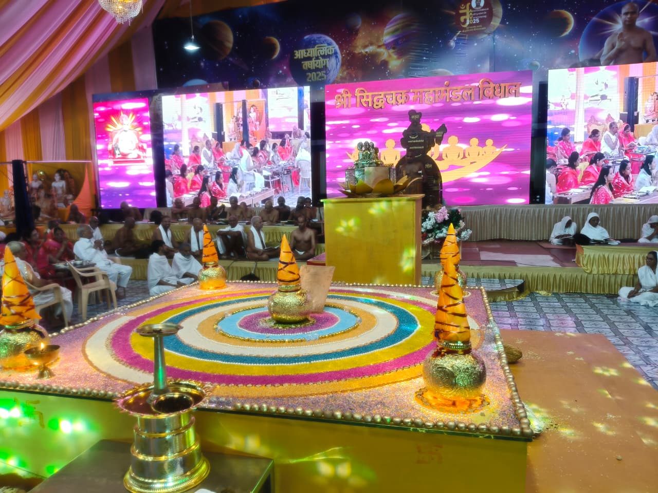 विधान के मुख्य पुण्यार्जक—सौधर्म इन्द्र सौमागमल कटारिया परिवार, राजा श्रीपाल राजेश शाह, धनपति कुबेर ऋषभ जैन, महायज्ञनायक विपिन पंचोरी साबला सहित 500 से अधिक इन्द्र-इन्द्राणी युगलों द्वारा सिद्धचक्र विधान पूजा की जा रही है। विधान मंडल को रंग-बिरंगे मोती, डायमंड व लाइटों से सजाया गया है, जो श्रद्धालुओं के आकर्षण का केंद्र बना हुआ है। धर्मसभा में आचार्य श्री सुनील सागरजी महाराज ने कहा—“सिद्धचक्र विधान, सिद्ध भगवान की महापूजा है। सिद्ध प्रभु अष्टकर्म से मुक्त होकर सिद्धशिला पर स्थित हुए हैं। उनकी आराधना से हमारे भी कर्मों का नाश होता है और पुण्य का बंध होता है।”