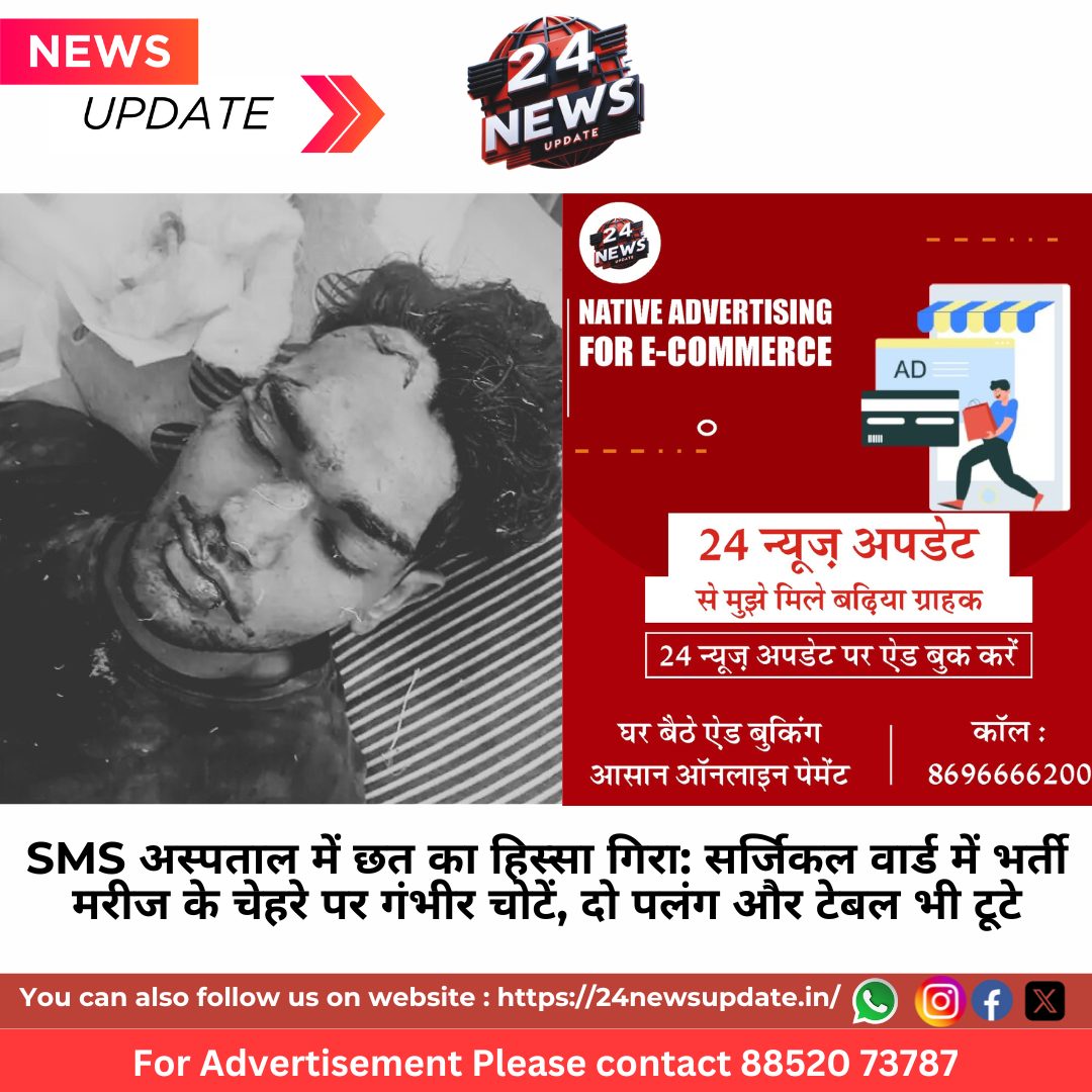 SMS अस्पताल के अधीक्षक डॉ. सुशील भाटी ने बताया कि हादसे में दो मरीजों को चोटें आई हैं। दोनों को तुरंत इलाज देकर अन्य सुरक्षित वार्ड में स्थानांतरित किया गया। उन्होंने कहा कि हादसे की गंभीरता को देखते हुए पूरे वार्ड की सुरक्षा जांच कराई जा रही है और निर्माण विभाग को घटना की विस्तृत रिपोर्ट तैयार करने के निर्देश दिए गए हैं।