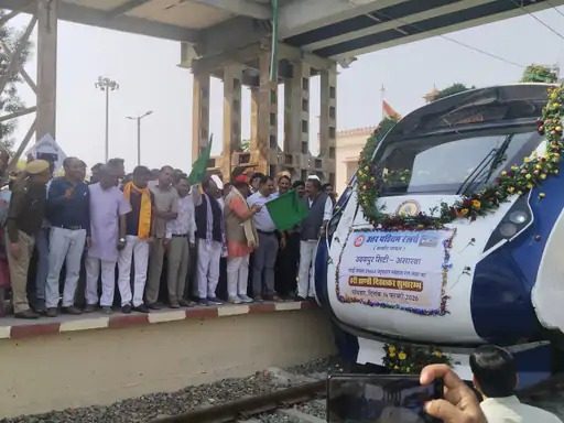 24 News Update उदयपुर। उदयपुर से डूंगरपुर होते हुए असारवा के बीच सोमवार को पहली वंदे भारत ट्रेन ने औपचारिक सफर शुरू किया। 110 किमी प्रतिघंटा की रफ्तार से जब ट्रेन डूंगरपुर स्टेशन पर पहुंची तो माहौल उत्सव में बदल गया—‘वंदे मातरम्’ के जयकारे गूंजे, लोको पायलट का फूल-मालाओं से स्वागत हुआ और छह मिनट के ठहराव के बाद ट्रेन असारवा के लिए रवाना हो गई।