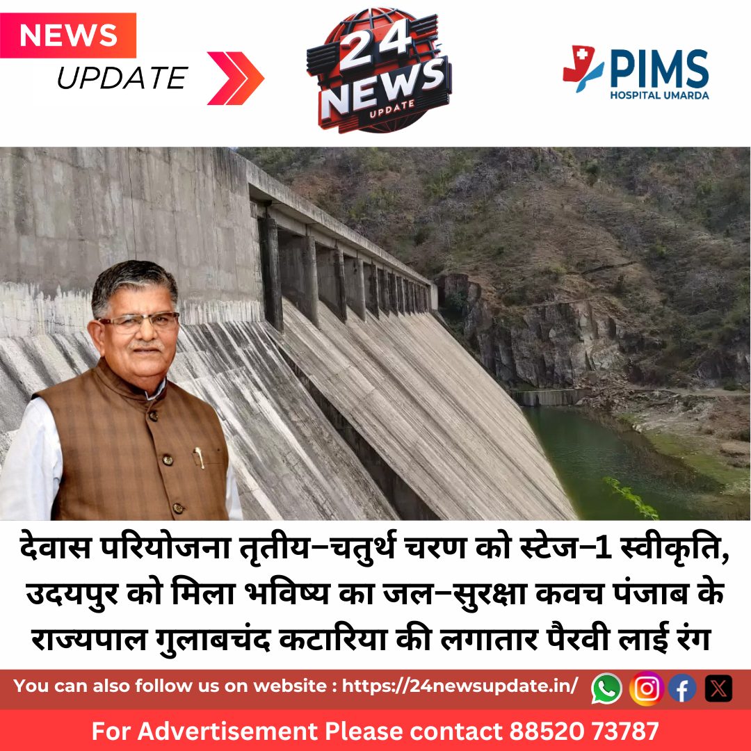 24 News Update उदयपुर। झीलों के शहर उदयपुर को दीर्घकालिक पेयजल सुरक्षा प्रदान करने वाली बहुप्रतीक्षित देवास परियोजना—तृतीय एवं चतुर्थ चरण को केंद्र सरकार से महत्वपूर्ण स्टेज–1 वन स्वीकृति मिल गई है। यह स्वीकृति न केवल तकनीकी प्रगति का चरण है, बल्कि उदयपुर के जल–भविष्य के लिए ऐतिहासिक उपलब्धि भी मानी जा रही है।