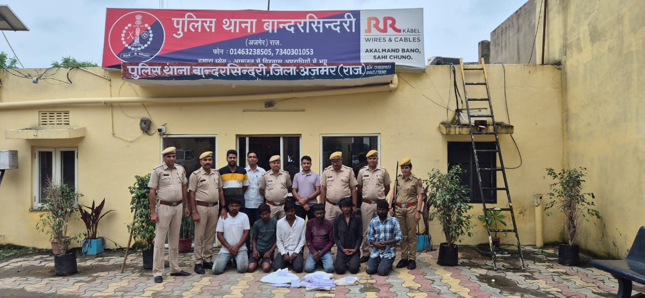 प्रदेश में सक्रिय गैंगस्टर्स, आपराधिक गिरोह, हथियार और नशा तस्करों के विरुद्ध चलाए जा रहे अभियान के अंतर्गत स्टेट क्राइम ब्रांच की टीम को एक बड़ी सफलता हासिल हुई है। टीम की सूचना पर अजमेर जिले की बांदरसिंदरी थाना पुलिस की टीम ने मध्य प्रदेश के कुख्यात पारदी गिरोह के छह जनों को चोरी की साजिश रचते रंगे हाथ चोरी में प्रयुक्त औजार और कुछ दिन पहले सवाई माधोपुर के माउंट टाउन थाना क्षेत्र में एक सूने मकान से चुराये सोने चांदी के जेवरात और नगदी बरामद की है।