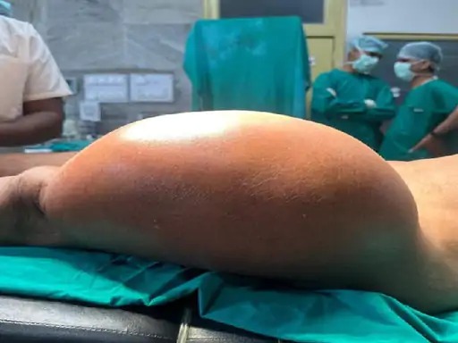 धौलपुर के राजाखेड़ा निवासी 68 वर्षीय रामबाबू जब पहली बार एसएमएस अस्पताल की ओपीडी में आए तो उनकी जांघ पर मौजूद इतनी बड़ी गांठ देखकर अस्पताल स्टाफ भी हैरान रह गया। सर्जिकल डिपार्टमेंट के एसोसिएट प्रोफेसर डॉ. नरेंद्र शर्मा ने बताया कि उन्होंने मरीज से पूछा कि वे इतने बड़े पैर के साथ जीवन कैसे जी रहे हैं। इस पर मरीज ने बताया कि यह गांठ उन्हें पिछले 30 साल से थी, लेकिन ऑपरेशन के डर से उन्होंने इसे निकलवाया नहीं था। जब परेशानी बहुत ज्यादा बढ़ गई तो उन्होंने धौलपुर और आसपास के इलाकों में डॉक्टरों को दिखाया, जिसके बाद उन्हें एसएमएस हॉस्पिटल जाने की सलाह दी गई।