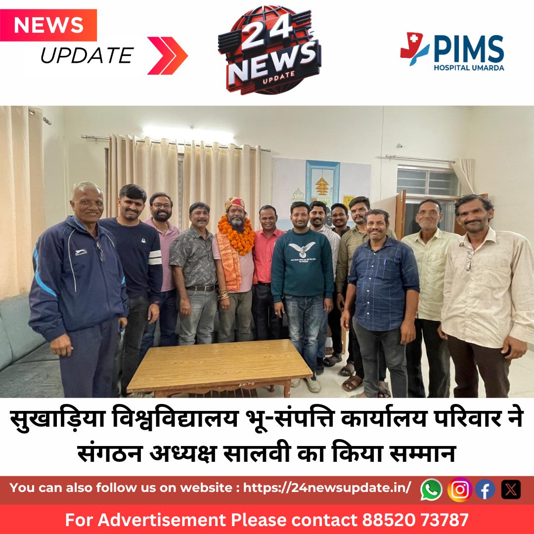 24 News update उदयपुर। मोहनलाल सुखाड़िया विश्वविद्यालय कर्मचारी संगठन (भारतीय मजदूर संघ) के अध्यक्ष श्री नारायण लाल सालवी के सालवी (बुनकर) समाज, साठ खेड़ा, खेरोदा चौकी, उदयपुर के अध्यक्ष चुने जाने पर भू-संपत्ति कार्यालय परिवार की ओर से एक सम्मान समारोह आयोजित किया गया।