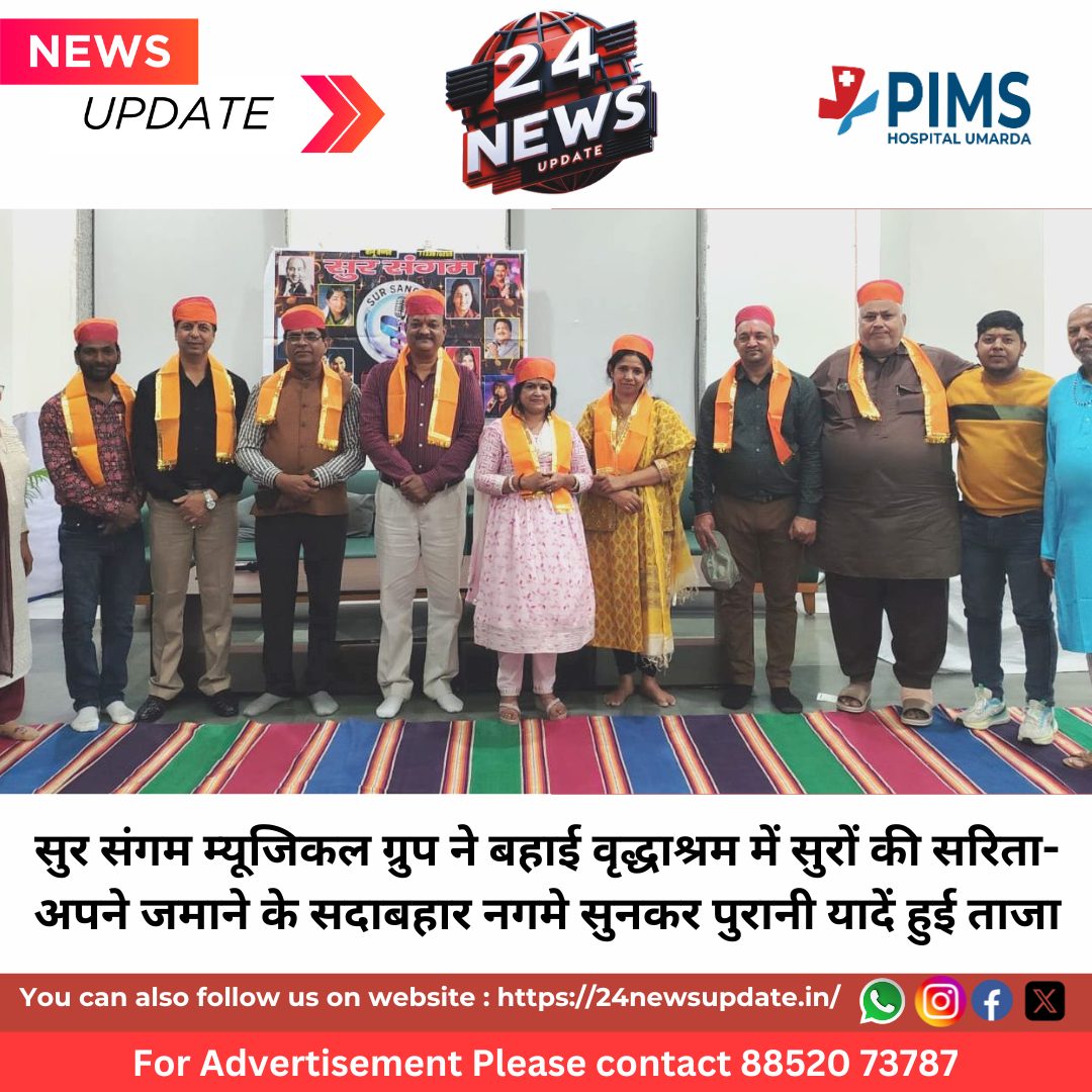 24 News Update उदयपुर, 5 नवम्बर। शहर के सुरीले गायकों के उभरते हुए सुर संगम म्यूजिकल ग्रुप की ओर से बुधवार को मां द्रोपदी देवी आनंद वृद्धाश्रम, उदयपुर में पुराने सदाबहार गीतों का कार्यक्रम का आयोजन हुआ। जिसमें 7 गायकों ने 21 सदाबहार नगमे गाकर सुरों की सरिता बहा दी।