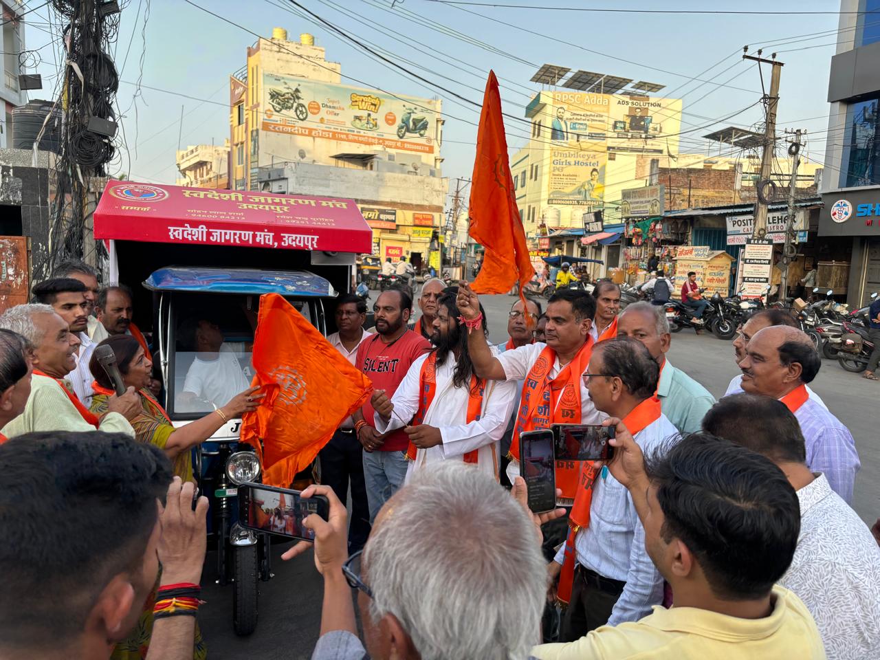 24 News Update Udaipur. स्वदेशी जागरण मंच द्वारा स्वदेशी सुरक्षा स्वावलंबन अभियान की शुरुआत बोहरा गणेश मंदिर से स्वदेशी रथ को भगवा पताका लगा कर प्रस्थान किया गया ।