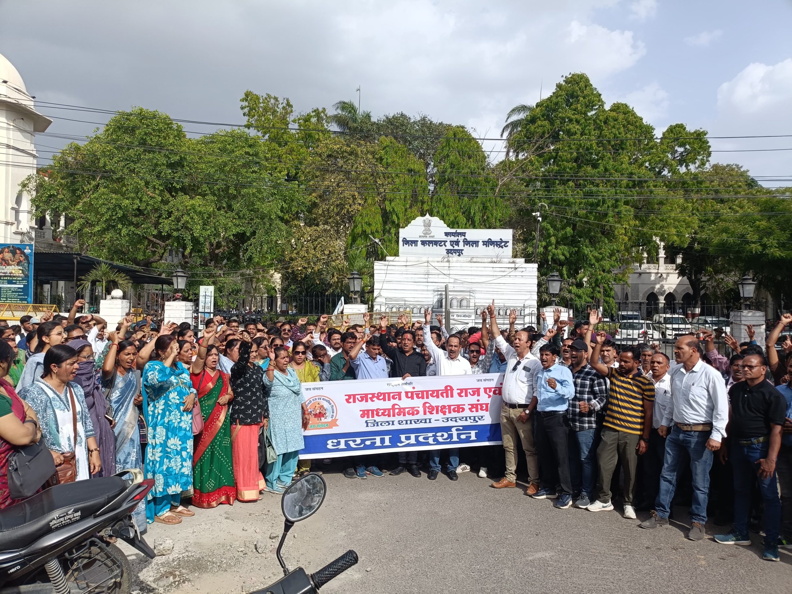 24 News Update उदयपुर। राजस्थान पंचायती राज एवं माध्यमिक शिक्षक संघ के बैनर तले बुधवार को जिला कलेक्टरी पर शिक्षकों ने जोरदार प्रदर्शन करते हुए शिक्षा विभाग की नीतियों के खिलाफ आक्रोश जताया। प्रदेशाध्यक्ष शेरसिंह चौहान के आह्वान पर जिलाध्यक्ष (उदयपुर प्रथम) कमलेश शर्मा और (द्वितीय) अरविन्द मीणा के नेतृत्व में सैकड़ों शिक्षक-शिक्षिकाएं एकत्रित हुए और मुख्यमंत्री के नाम जिला कलेक्टर गौरव अग्रवाल को सात सूत्रीय ज्ञापन सौंपा।प्रदर्शन के दौरान प्रदेशाध्यक्ष शेरसिंह चौहान ने कहा कि शिक्षा विभाग द्वारा जारी शिविरा पंचांग में इस बार एक जुलाई के बजाय 21 जून से स्कूल खोलने का निर्णय प्रदेश की भौगोलिक विषमताओं की अनदेखी है। उन्होंने आरोप लगाया कि भीषण गर्मी के दौर में विद्यार्थियों और शिक्षकों को स्कूल बुलाना उनके स्वास्थ्य के साथ खिलवाड़ है। राजस्थान जैसे राज्य में जून माह में तापमान 45 से 50 डिग्री सेल्सियस तक पहुंचता है और लू के थपेड़ों के बीच विद्यालय संचालन का निर्णय पूरी तरह अव्यावहारिक है।शिक्षक नेताओं ने यह भी कहा कि विभाग छुट्टियों में कटौती जैसे फैसले तो तेजी से लागू कर रहा है, लेकिन वर्षों से लंबित मूलभूत समस्याओं की ओर ध्यान नहीं दिया जा रहा। प्रदेशभर के सरकारी विद्यालयों में व्याख्याताओं, वरिष्ठ अध्यापकों और प्राचार्यों के पद बड़ी संख्या में रिक्त पड़े हैं। चार वर्ष पूर्व क्रमोन्नत उच्च माध्यमिक विद्यालयों और महात्मा गांधी स्कूलों में आज भी स्टाफ की भारी कमी बनी हुई है, वहीं पदोन्नत प्रधानाचार्य एक वर्ष से पदस्थापन की प्रतीक्षा कर रहे हैं।ज्ञापन में यह भी उल्लेख किया गया कि पिछले 12 वर्षों से तृतीय श्रेणी शिक्षकों के स्थानांतरण नहीं किए गए हैं और आज तक पारदर्शी ट्रांसफर पॉलिसी लागू नहीं हो पाई है। शिक्षकों को लगातार गैर-शैक्षणिक कार्यों में लगाया जा रहा है, जिससे शिक्षा व्यवस्था प्रभावित हो रही है। संगठन ने ग्रीष्मावकाश में कटौती के आदेश वापस लेने, पारदर्शी तबादला नीति लागू करने, स्थानांतरण प्रक्रिया शुरू करने, तृतीय श्रेणी शिक्षकों की लंबित डीपीसी कराने, रिक्त पदों को शीघ्र भरने और जर्जर विद्यालय भवनों के निर्माण व मरम्मत के लिए पर्याप्त बजट उपलब्ध कराने की मांग उठाई। इसके अलावा शिक्षकों ने पुरानी पेंशन योजना को यथावत बनाए रखने और वर्ष 2012 से पूर्व नियुक्त शिक्षकों को टेट अनिवार्यता से मुक्त करने के लिए केंद्र स्तर पर कानून बनाने की मांग भी रखी। साथ ही यह भी कहा गया कि यदि सरकार 21 जून से विद्यालय संचालन पर अड़ी रहती है, तो विद्यार्थियों को गर्मी और लू से बचाने के लिए ठोस व्यवस्थाएं सुनिश्चित की जाएं तथा शिक्षकों को घटाए गए अवकाश के बदले न्यूनतम 30 पीएल देने 