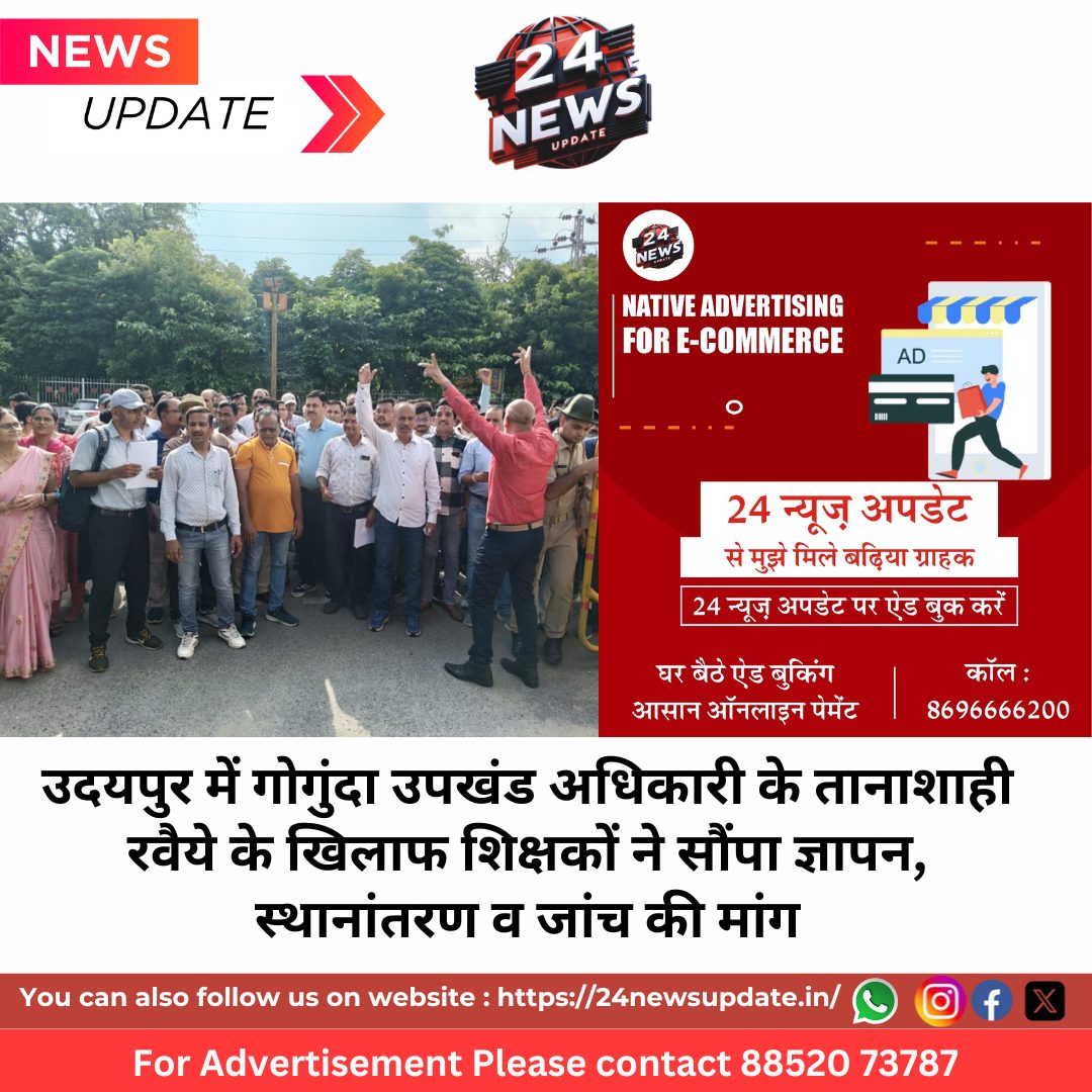 24 News Update उदयपुर, 15 जुलाई। राजस्थान पंचायती राज एवं माध्यमिक शिक्षक संघ ने मंगलवार को उपखंड अधिकारी शुभम भैंसारे के खिलाफ शिक्षा विभाग में अव्यवहारिक कार्यवाही और तानाशाही रवैये का आरोप लगाते हुए मुख्य सचिव राजस्थान सरकार के नाम जिला कलेक्टर को ज्ञापन सौंपा। संगठन के प्रदेशाध्यक्ष शेरसिंह चौहान और जिला अध्यक्ष चंद्रशेखर परमार के नेतृत्व में शिक्षकों और पदाधिकारियों ने विरोध जताते हुए उपखंड अधिकारी पर शिक्षा विभाग की कार्यशैली में अनावश्यक हस्तक्षेप और नियमों के विरुद्ध कार्रवाई करने का आरोप लगाया।प्रधानाचार्य सुधा शर्मा को नोटिस देने पर विवादप्रदेशाध्यक्ष शेर सिंह चौहान ने बताया कि राजकीय उच्च माध्यमिक विद्यालय ओबरा कलां की प्रधानाचार्य सुधा शर्मा को विद्यालय में पाठ्यपुस्तक वितरण, प्रवेश प्रक्रिया और वेतन बिल तैयार करने जैसे शैक्षणिक कर्तव्यों के निर्वहन के आरोप में 17 सीसी का आरोप पत्र जारी किया गया है, जो पूरी तरह अवैधानिक है। उन्होंने कहा कि वही उपखंड कार्यालय शिक्षकों को बीएलओ बनाकर खाद्य सुरक्षा योजना का सर्वेक्षण और अन्य गैर-शैक्षणिक कार्यों में व्यस्त रखता है। ऐसे में शिक्षकों की नियमित शैक्षणिक सेवाएं बाधित हो रही हैं।प्रतिनियुक्ति शिक्षकों से शिक्षा व्यवस्था पर संकटजिला महामंत्री कमलेश शर्मा ने बताया कि उपखंड अधिकारी कार्यालय में विज्ञान-गणित जैसे महत्वपूर्ण विषयों के शिक्षक वर्षों से प्रतिनियुक्ति पर कार्यरत हैं। जिससे ग्रामीण विद्यालयों में पढ़ने वाले विद्यार्थियों की पढ़ाई प्रभावित हो रही है। उन्होंने याद दिलाया कि 12 अक्टूबर 2021 के राज्य सरकार के आदेशानुसार साक्षात्कार या परीक्षा के जरिए प्रतिनियुक्ति अधिकतम 3 वर्ष तक सीमित है और अन्य सभी प्रतिनियुक्तियों पर पूर्ण प्रतिबंध है। बावजूद इसके नियमों की अनदेखी कर शिक्षकों को उपखंड कार्यालयों में पदस्थापित किया गया है।ज्ञापन में संघ ने मांग की है कि—उपखंड अधिकारी शुभम भैंसारे का तत्काल स्थानांतरण किया जाए।उनके विरुद्ध प्रशासनिक जांच प्रारंभ की जाए।प्रधानाचार्य सुधा शर्मा पर लगाया गया 17 सीसी का नोटिस वापस लिया जाए।उपखंड कार्यालय में प्रतिनियुक्त सभी शिक्षकों को मूल विद्यालय में भेजा जाए।प्रदेशभर में उपखंड कार्यालय व जिला प्रशासन में प्रतिनियुक्त शिक्षकों को कार्यमुक्त किया जाए।कार्मिक विभाग प्रत्येक माह उपखंड अधिकारी से अनिवार्य प्रमाणपत्र ले कि उनके कार्यालय में कोई शिक्षक प्रतिनियुक्ति पर नहीं है।शिक्षकों को बीएलओ सहित अन्य गैर-शैक्षणिक कार्यों से तत्काल मुक्त किया जाए। कई संगठनों व शिक्षकों ने जताया समर्थनज्ञापन कार्यक्रम में प्रदेश कोषाध्यक्ष सतीश जैन, प्