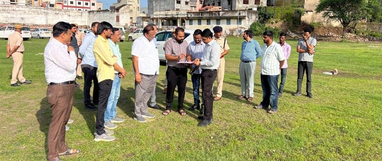 जहा एक तरफ 9 अगस्त है वही दुसरी और 9 अगस्त को रक्षा बंधन उत्सव भी है ऐसी स्थिती को देखते हूए जिला कलेक्टर अंकित कुमार,उपखण्ड अधिकारी सुबोध ङ्क्षसह चारण,पुलिस उपअधीक्षक रूपङ्क्षसह कार्यक्रम नगर के महिपाल विद्यालय खेल मैदान में पहुचे तथा मैदान का अवलोकन किया एवं विभिन्न विभागो के अधिकारीयो को जिला कलेक्टर ने आवश्यक दिशा निर्देश हूए कार्यक्रम को शांति पूर्वक मनाने की अपील की गई साथ ही अधिकारियो से समारोह स्थल पर टेंट,मंच,बैठक व्यवस्था,पानी,लाइट,पार्किग,सुरक्षा व्यवस्थाओं के सम्बन्ध मे जानकारी प्राप्त की। कार्यक्रम में मुख्यमंत्री या अन्य किसी मंत्री के आने की सम्भावना जताई जा रही है जिसें लेकर प्रशासन पूरी तरह से संक्रिय है। इस अवसर पर थाना प्रभारी मदनलाल खटीक, तहसीलदार गोगराम मीणा, पंचायत समिति विकास अधिकारी भरत कलाल, जल संसाधन विभाग अधिकारी मूलाराम सोंलकी, पीआरओ छाया चौबीसा, पीडब्ल्यूडी अयन पाटीदार, विनय पुंजोत,नगर पालिका के अधिकारी सहित अन्य अधिकारी उपस्थित रहे।