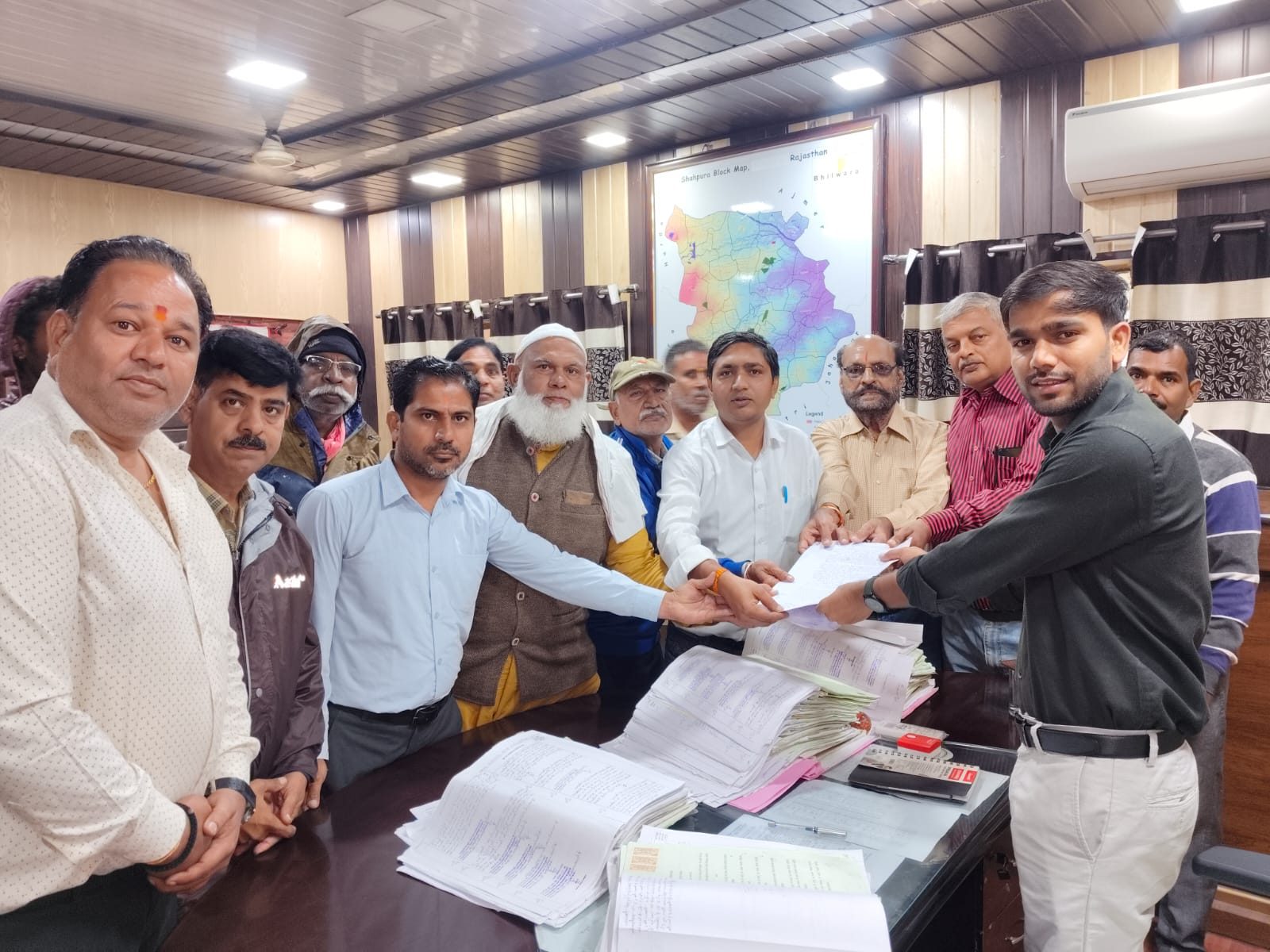 24 News Update शाहपुरा. शाहपुरा शहर में अभिभाषक संस्था शाहपुरा के तत्वाधान में जिला बचाओ संघर्ष समिति शाहपुरा द्वारा शाहपुरा को वापस जिले का दर्जा दिलाने की मांग का स्मरण पत्र जिला बचाओ संघर्ष समिति महासचिव कमलेश मुंडेतिया के नेतृत्व में उपखण्ड अधिकारी शाहपुरा को मुख्यमंत्री राजस्थान सरकार के नाम पांचवा समरण पत्र दिया गया और शाहपुरा को जिला बनाने का किया वादा याद दिलाया । विदित रहे पूर्व में जिला बचाओ संघर्ष समिति और मुख्यमंत्री की जयपुर में शाहपुरा विधायक की मौजूदगी में वार्ता हुई और शाहपुरा को वापस जिला बनाने का सकारात्मक आश्वासन मिला था । परन्तु सरकार ने 5 माह बीतने के बाद भी शाहपुरा को वापस जिले का दर्जा नहीं दिया जिससे आमजन में आक्रोश है। संघर्ष समिति जनता से किये वादों के लिए कटिबद्ध है । इस मौके पर जिला बचाओ संघर्ष समिति महासचिव कमलेश मुंडेतिया अधिवक्ता मोहम्मद शरीफ राहुल पारीक गीत मंडेला प्रॉपर्टी एसोसिएशन अध्यक्ष अजय मेहता कपड़ा व्यवसायिक संगठन के अध्यक्ष ओम सिंधी स्टांप वेंडर संगठन के अध्यक्ष भगवान सिंह यादव संघर्ष समिति सदस्य उदय लाल बेरवा सतनारायण पाठक हाजी उस्मान मोहम्मद छिपा दुर्गा लाल जोशी कवि दिनेश बंटी शर्मा मदनलाल कंडारा छोटू रंगरेज रामस्वरूप खटीक सुनील पाराशर अरुण राव चरण दास खटीक किशन कहार प्रेम सिंह यादव राजू कायमखानी केदार गुर्जर सहित कई सदस्य एव शाहपुरा के आमजन मौजूद रहे।