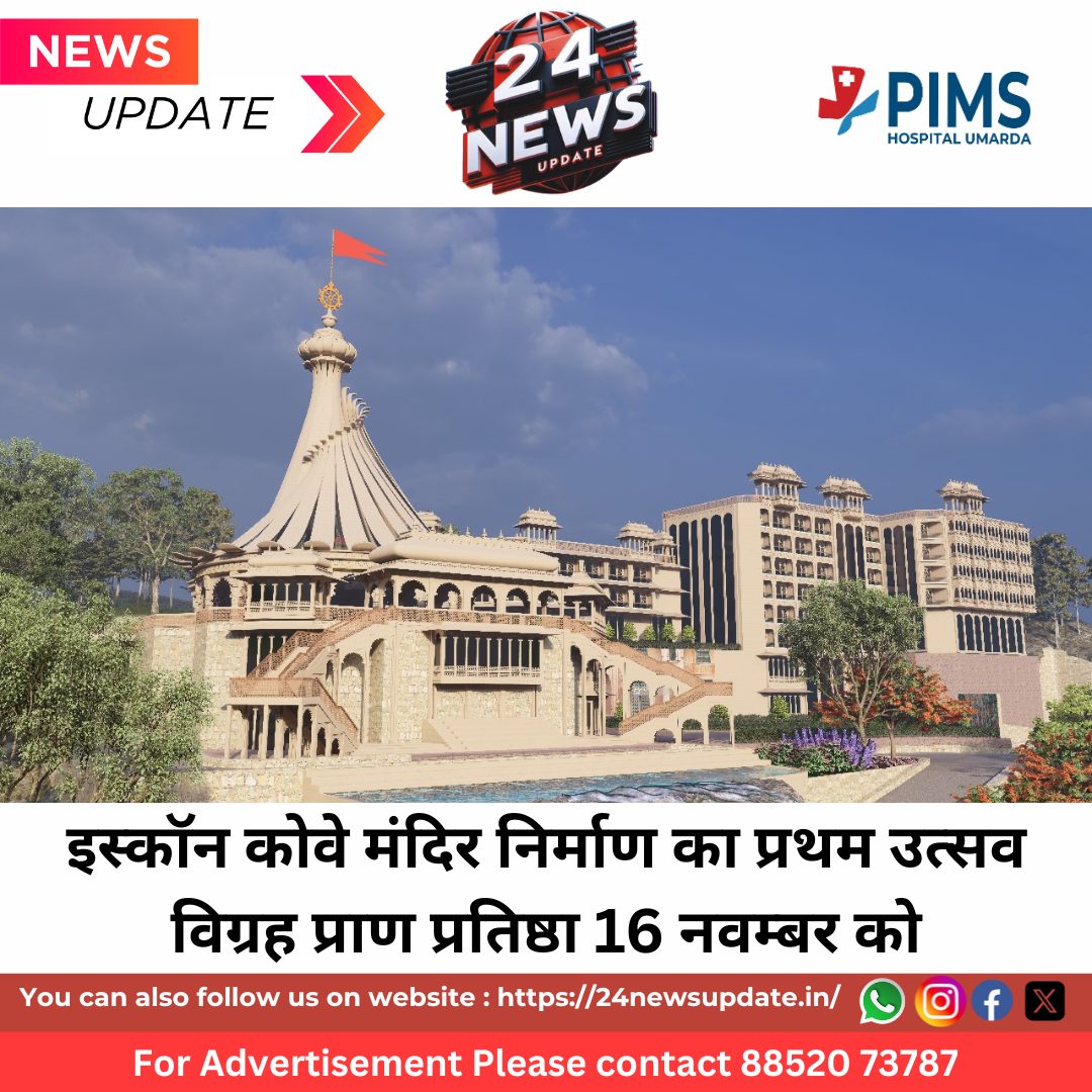 24 News Update उदयपुर, चीरवा मोहनपुरा मे निर्माणाधीन श्री गंधर्विका गोवर्धनधारी भक्ति वेदांत हिल्स, इस्कॉन कोवे मंदिर का सर्व प्रथम श्री निताई गौरांग प्रभु के भव्य उत्सव विग्रह की प्राण प्रतिष्ठा का ऐतिहासिक आध्यात्मिक आयोजन 16 नवम्बर रविवार को होने जा रहा है। प्रोजेक्ट डाइरेक्टर मदन गोविंद प्रभु ने बताया कि 16 नवम्बर (रविवार) प्रातः 9:30 बजे से मुख्य समारोह का शुभारंभ होगा, जिसमें भगवान श्री श्री नीताई गौरांग के उत्सव विग्रह की प्राण प्रतिष्ठा, महाभिषेक एवं 1008 भोगार्पण का भव्य महामहोत्सव संपन्न होगा।