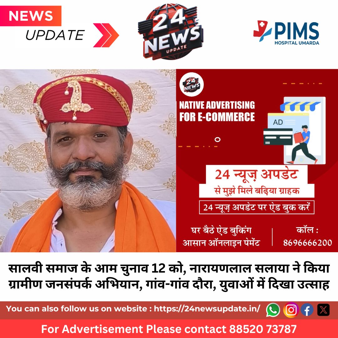 24 News Update उदयपुर। सालवी समाज, साठ खेड़ा, खेरोदा चौकी के आम चुनाव आगामी 12 अक्टूबर 2025 (रविवार) को श्रीनाथ समिति भवन, ग्लास फैक्ट्री में संपन्न होंगे। चुनाव को लेकर समाज में तैयारियाँ जोरों पर हैं।