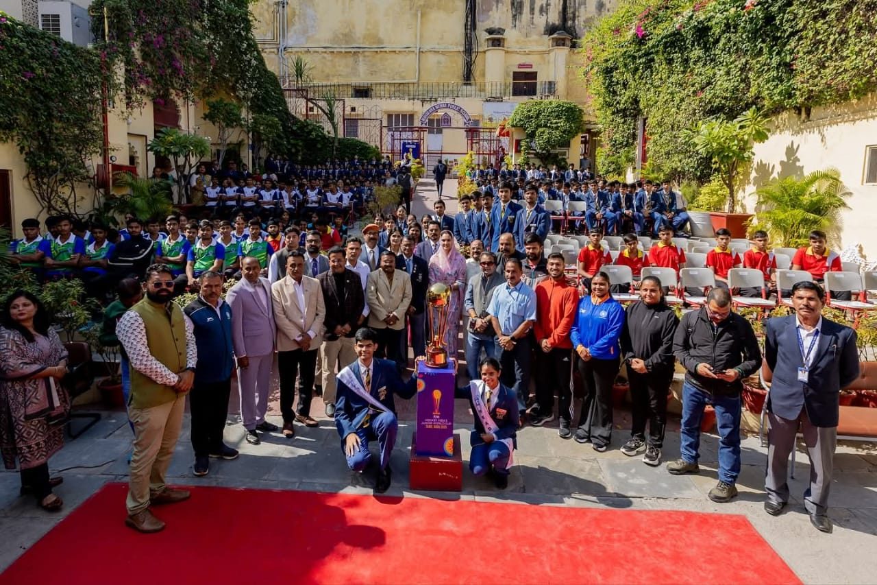 24 News Update उदयपुर। एफआईएच जूनियर हॉकी वर्ल्ड कप 2025 की ट्रॉफी का भव्य अनावरण समारोह शुक्रवार को उदयपुर सिटी पैलेस परिसर में स्थित महाराणा मेवाड़ पब्लिक स्कूल में आयोजित हुआ। यह ऐतिहासिक आयोजन हॉकी राजस्थान के निर्देशन में हॉकी उदयपुर द्वारा किया गया, जिसमें देशभर से आए खिलाड़ियों, पदाधिकारियों और खेल प्रेमियों ने भाग लिया। हॉकी उदयपुर के सचिव एवं ट्रॉफी टूर के मुख्य संयोजक डॉ. कुलदीप सिंह झाला ने बताया कि हॉकी राजस्थान के अध्यक्ष अरुण सारस्वत के निर्देशन में ट्रॉफी का स्वागत महाराणा प्रताप एयरपोर्ट पर ढोल-नगाड़ों और राष्ट्रीय ध्वजों के साथ किया गया। स्वागत में हॉकी राजस्थान व उदयपुर के अधिकारी, खिलाड़ी और खेल प्रेमी बड़ी संख्या में मौजूद थे।