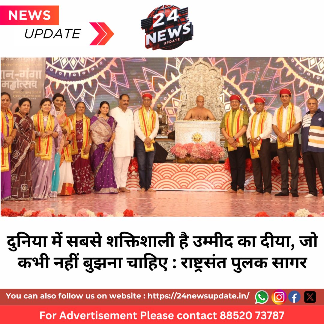 24 News Update उदयपुर। सर्वऋतु विलास स्थित महावीर दिगम्बर जैन मंदिर में राष्ट्रसंत आचार्यश्री पुलक सागर महाराज ससंघ का चातुर्मास भव्यता के साथ संपादित हो रहा है। मंगलवार को टाउन हॉल नगर निगम प्रांगण में 27 दिवसीय ज्ञान गंगा महोत्सव के 17वें दिन नगर निगम प्रांगण में विशेष प्रवचन हुए। चातुर्मास समिति के अध्यक्ष विनोद फान्दोत ने बताया कि मंगलवार को कार्यक्रम के मुख्य अतिथि मुख्य वन संरक्षक जोधपुर आरके जैन, राजीव जैन संपादक राजस्थान, आयुर्वेदाचार्य शोभालाल औदिच्य, लक्ष्मीलाल बोहरा, बबीता जैन, लीला कुरडिया, डिम्पल डागरिया आदि उपस्थित थे ।चातुर्मास समिति के परम संरक्षक राजकुमार फत्तावत व मुख्य संयोजक पारस सिंघवी ने बताया कि ज्ञान गंगा महोत्सव के 17वें दिन आचार्य पुलक सागर महाराज ने कहा मगध के राजा श्रेणिक ने भगवान महावीर से प्रश्न पूछा कि भगवान दुनिया में सबसे ज्यादा शक्तिशाली कौन होता है, सबसे ज्यादा मजबूर कौन होता है, भगवान ने कहा कि सबसे ज्यादा मजबूत पत्थर की चट्टान हुआ करती है । राजा ने पूछा चट्टान से भी मजबूत कोई चीज है क्या? महावीर ने कहा अवश्य है लोहा चट्टान से भी मजबूत होता है, जो चट्टान के भी टुकड़े टुकड़े कर देता है । राजा ने पूछा कि उससे भी मजबूत कुछ है क्या, महावीर ने कहा कि अवश्य है आग, जो लोग के भीतर प्रवेश कर जाती है, इस पर राजा ने कहा कि और कुछ इससे भी ज्यादा मजबूत होता है क्या? महावीर ने कहा है पानी, जो आग को भी बुझा देता है । राजा के कहा अंतिम एक बार और बता दो कि पानी से ज्यादा मजबूत भी कुछ होता है क्या ? महावीर ने कहा अवश्य और वो होता है आदमी का संकल्प । आदमी के संकल्प में वो ताकत होती कि वो पाताल से भी पानी को बाहर निकाल सकता है । आदमी के संकल्प से शक्तिशाली कोई वस्तु नहीं हुआ करती है । संकल्प करो सफलता तुम्हारा इंतजार कर रही है । आदमी तकदीर बदल सकता है, तस्वीर बदल सकता है, यदि वह संकल्प कर ले तो । संकल्प में वह ताकत है कि वह अंतरिक्ष की यात्रा कर सकता है, समुद्र के भीतर जाकर खोज कर सकता है । अपनी संकल्प शक्ति को मजबूत करो ।आदमी कितना नाउम्मीद हो गया है, समाचार पत्रों में आए दिन हम देखते है ऐसी घटनाएं, सहनशक्ति बची नहीं है । गम इस बात का नहीं हैं कि आदमी मर जाता है, ग़म इस बात का है कि आदमी जिंदा होकर भी जिंदा नहीं रह पाता । आज का आदमी मुर्दे की तरह जी रहा है । मुरझाया हुआ थका थका सा चेहरा लेकर जी रहे हो । कभी प्रात:काल की वेला को सुबह छत पर जाकर देखना, सूर्योदय होता है, पक्षी चहचहाया करते है । जानवर आनंदित होते है, हवा की लहरें हर तरफ रहती है, फूल खिल रहे है । हर तरफ एक उत्साह का वातावरण होता है । हमें प्रकृति से जीने का तरीका सीखना चाहिए । आत्महत्या करना कोई बड़ा काम नहीं है, लेकिन जीवन मिलना बहुत ब