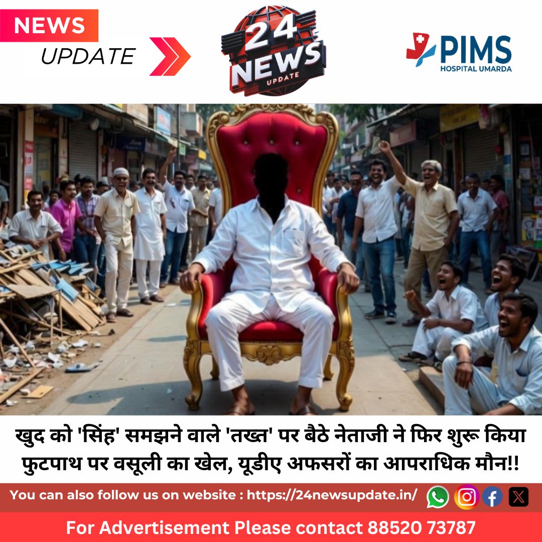 24 News Update उदयपुर. उदयपुर के सेक्टर-14… में सेटेलाइट अस्पताल के बाहर फुटपाथ का वही तख्त। वही खुद को सिंह समझने वाले नेताजी…। और हां, वही खुली वसूली! आपको बता दें कि कुछ दिन पहले बंद हुई दुकानें, अब फिर से उनके राजनीतिक संरक्षण में रही हैं। नेताजी सोच रहे थे कि जनता भूल जाएगी… और राजनीतिक धौंसपट्टी के सहारे फुटपाथ पर फिर से कब्जा करवा कर अवैध वसूली का अंडर कारोबार फिर से से जमा लेंगे… लेकिन उनकी चाल इस बार नाकाम नहीं होने वाली है। आज हमारी टीम मौके पर गई… तो देखा कि अड़ियल और घमंड से भरे हुए खुद को ‘सिंह’ समझने वाले नेताजी फुटपाथ पर बेखौफ कब्जा जमाए बैठे वसूली का खेल खेल रहे हैं। यही नहीं, इनके यहां इनके जैसे पॉलिटिकल लोगों का भी आना जाना है जिनको जनता अब तक अपना नुमाइंदा समझती थी। लगता है ये लोग यहां पर ट्रेनिंग लेने आ रहे हैं कि शहर में इस प्रकार के और वसूली के अड्डे कैसे चलाए जा सकते हैं। स्थानीय जनप्रतिनिधियों का कोई डर नहीं दिखाई दे रहा है। बल्कि जनता तो अब उन पर भी मिलीभगत होने की उंगली उठाने लग गई है। अस्पताल के बाहर का रास्ता लोगों की सुगम आवाजाही के लिए है मगर जब से तख्त वाले व खुद को सिंह समझने वाले नेता की बुरी नजर पड़ी है। यह जमीन उनके लिए सोना उगलने लग गई है। अतिक्रमण करवा कर वसूली का पूरा रैकेट चला दिया है नेताजी ने। हो सकता है इसका पैसा उपर तक कहीं पहुंच रहा हो वरना यह तो संभव नहीं कि छोटे—मोटे मामलों में पराक्रम दिखाने वाले यूडीए के अफसर इस मामले में भीगी बिल्ली बनकर मुंह छिपाए आखिर क्यों बैठ गए हैं? आपको याद दिला दें कि इन नेताजी का नाम पिछले दिनों बलीचा की जमीनों के मामले में खूबर उछला था। इसके अलावा भी इनके काले कारनामों के रोज नए किस्से जनता की चौपाल में डिस्कस किए जा रहे हैं। आज हमने मौके पर देखा कि जो दुकानें पिछली खबर दिखाए जाने के बाद बंद कर दी गई थी वे फिर से खुल गईं हैं। लोग कह रहे हैं कि नेताजी ने आश्वासन दिया है कि उनकी सेटिंग जयपुर तक है। माल उपर तक पहुंचा देंगे तो मीडिया आखिर क्या ही बिगाड़ लेगा। यूआईटी अफसरों को उन्होंने धौंस दिखाकर या पैसों की बारिश करके ऐसा परफेक्ट मैनेज किया है कि जनता कह रही है कि लगता है कमिशनर साहब ने इस रास्ते पर ही आना छोड़ दिया है। ताकि कहीं तख्त पर नजर पड़ जाए और मन में अतिक्रमण हटाने का विचार ना कुलबुला जाएं लेकिन जनता की आवाज इतनी सस्ती और बिकाउ तो नहीं है। जनता देख रही है… हर कदम देख रही है। और समय आने पर हर तरह की भाषा में दिखाना भी जानती है। अब वक्त है कि अगर अतिक्रमण हटाया नहीं गया, तो हमारी मुहिम तेज़ होगी। तेज़ इतनी कि नेताजी बेनकाब होंगे… और उन्हें बचाने वाले अफसर भी। हम यूडीए अफसरों से सीधे अपील करते हैं—नेताजी की चरणवंदना छोड़िए, सीध