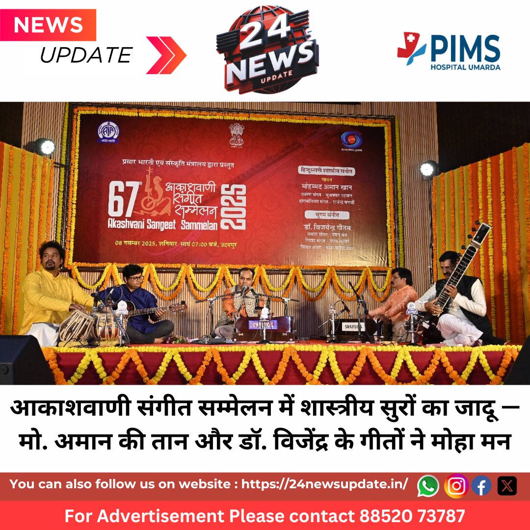 24 News Update उदयपुर। राजस्थान कृषि महाविद्यालय के नूतन सभागार में शनिवार की रात शास्त्रीय संगीत, गीत और भजनों की सुरधारा बह उठी। अवसर था प्रसार भारती और संस्कृति मंत्रालय, भारत सरकार के संयुक्त तत्वावधान में आयोजित 67वें आकाशवाणी संगीत सम्मेलन 2025 का।
