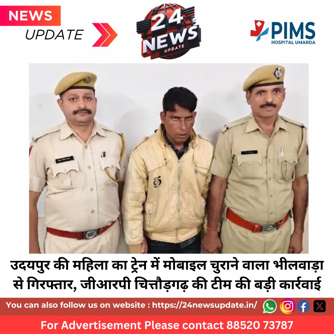 24 न्यूज अपडेट, उदयपुर। चित्तौड़गढ़ जीआरपी पुलिस ने उदयपुर-रतलाम एक्सप्रेस ट्रेन में हुई चोरी के मामले का खुलासा करते हुए एक आरोपी को गिरफ्तार कर लिया है। आरोपी को भीलवाड़ा जिले के बिजौलिया क्षेत्र से पकड़ा गया। पुलिस ने उसके पास से चोरी किया गया मोबाइल फोन बरामद किया है, जिसकी कीमत करीब 15 हजार रुपए बताई जा रही है।