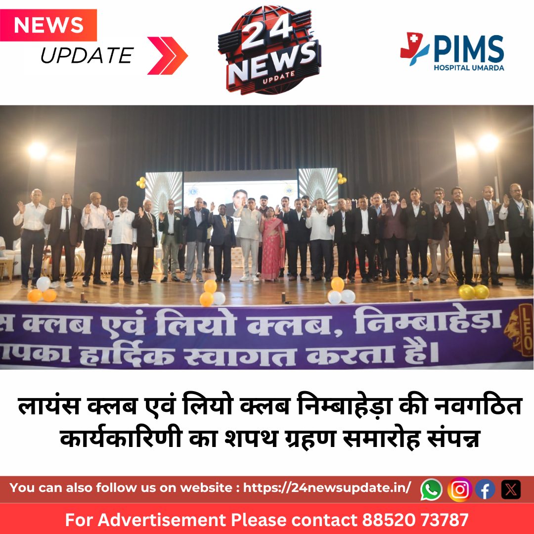 24 News Update निम्बाहेड़ा कविता पारख। लायंस एवं लियो क्लब निम्बाहेड़ा की वर्ष 2025 – 26 की कार्यकारिणी का शपथ ग्रहण समारोह शनिवार को वंडर सीमेंट टाउन हॉल निम्बाहेड़ा में आयोजित किया गया।