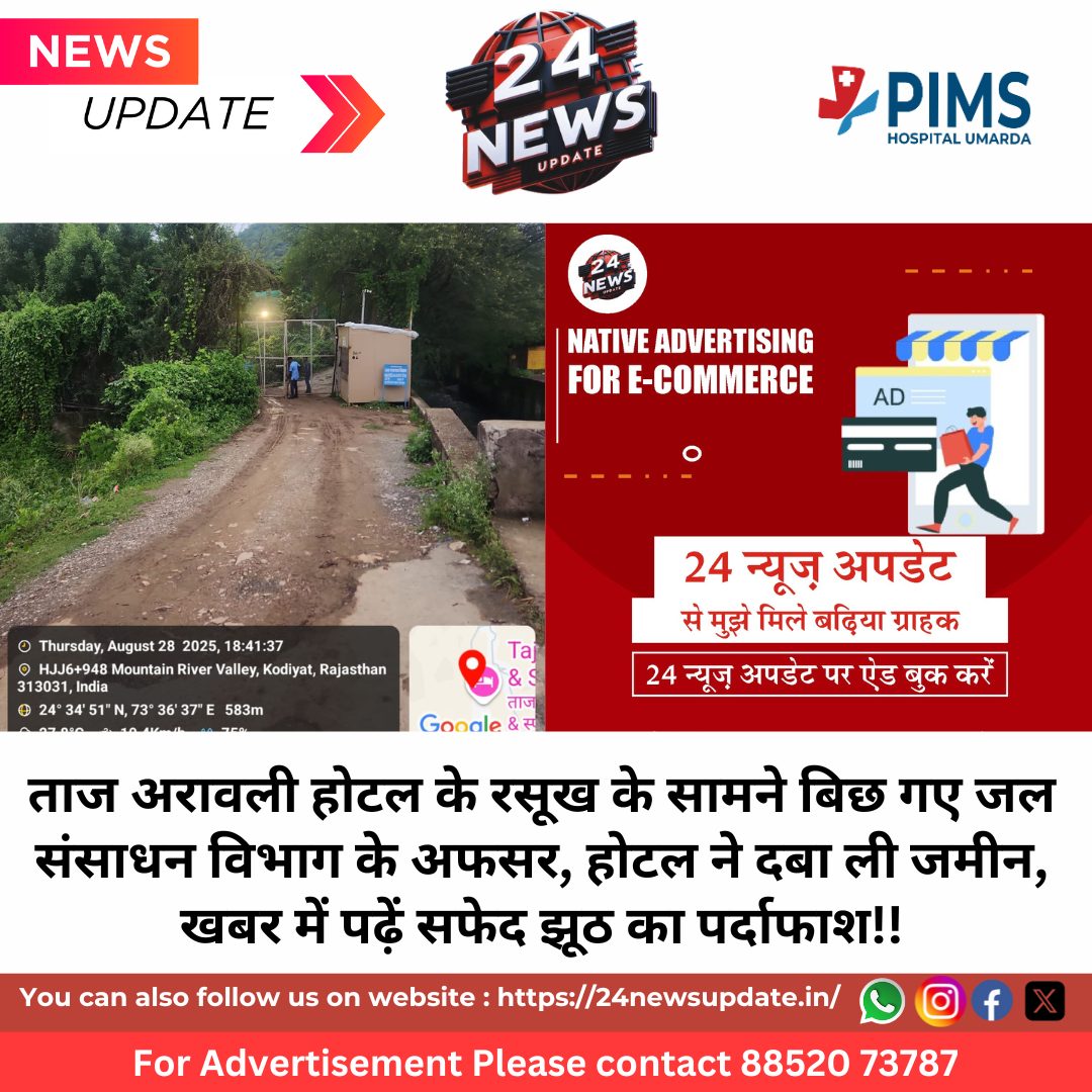 24 न्यूज अपडेट, उदयपुर। शहर के जल संसाधन विभाग के अफसर लगता है कि ताजा अरावली होटल के रसूख के आगे बिछ गए हैं। विभाग की जमीन पर होटल ने सड़क बनाकर गार्ड बिठा दिया है। गेट लगा दिया है। रास्ते पर कब्जा करके सीसीटीवी कैमरे लगा दिए हैं। पूरी जमीन पर कब्जे के बावजूद अफसर भ्रष्टाचार में इतने ज्यादा डूब गए हैं कि आरटीआई में जवाब मांगने पर कह रहे हैं कि जमीन विभाग के कब्जे में हैं। होटल से वापस ले ली गई है। जबकि सच्चाई आप खुद फोटो में ही देख लीजिए।