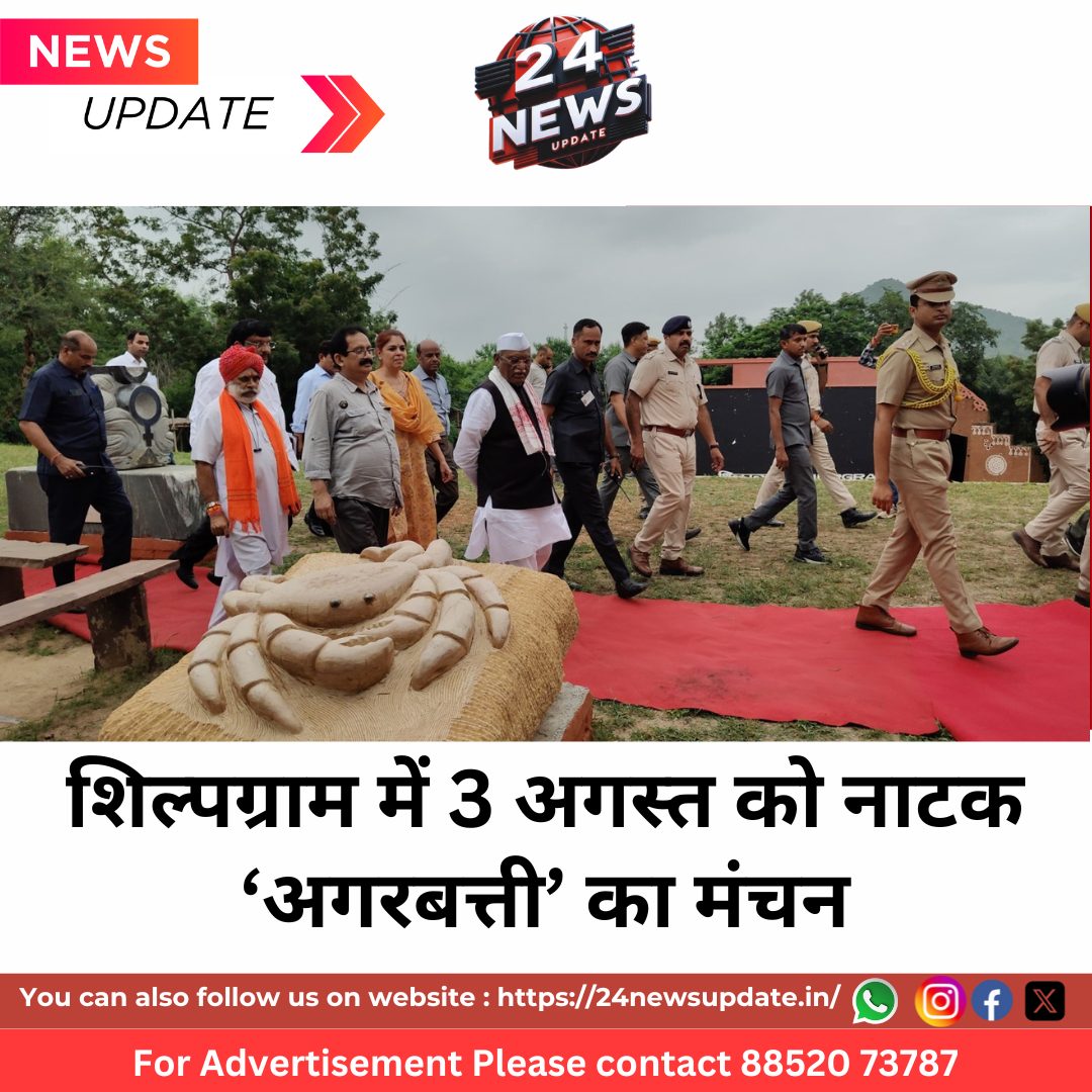 24 News Update उदयपुर। पश्चिम क्षेत्र सास्कृतिक केंद्र उदयपुर द्वारा आयोजित मासिक नाट्य संध्या ‘रंगशाला’ के अंतर्गत रविवार 3 अगस्त को ‘अगरबत्ती’ नाटक का मंचन किया जाएगा। पश्चिम क्षेत्र सास्कृतिक केंद्र उदयपुर के निदेशक फ़ुरकान खान ने बताया की प्रति माह आयोजित होने वाली मासिक नाट्य संध्या रंगशाला के अंतर्गत समागम रंगमंडल जबलपुर मध्यप्रदेश द्वारा ‘अगरबत्ती’ नाटक का मंचन रविवार 3 अगस्त को सायं 7 बजे शिल्पग्राम उदयपुर स्थित दर्पण सभागार में किया जाएगा। इस नाटक के लेखक आशीष पाठक एवं निर्देशक स्वाति दुबे है। यह नाटक वर्ण और लिंग के भेदभाव से जुड़े नारी अत्याचार के सुलगते प्रश्न खड़े करता है और फिर इनका समाधान प्रस्तुत करता है। इस कार्यक्रम में आमजन का प्रवेश निःशुल्क रहेगा।