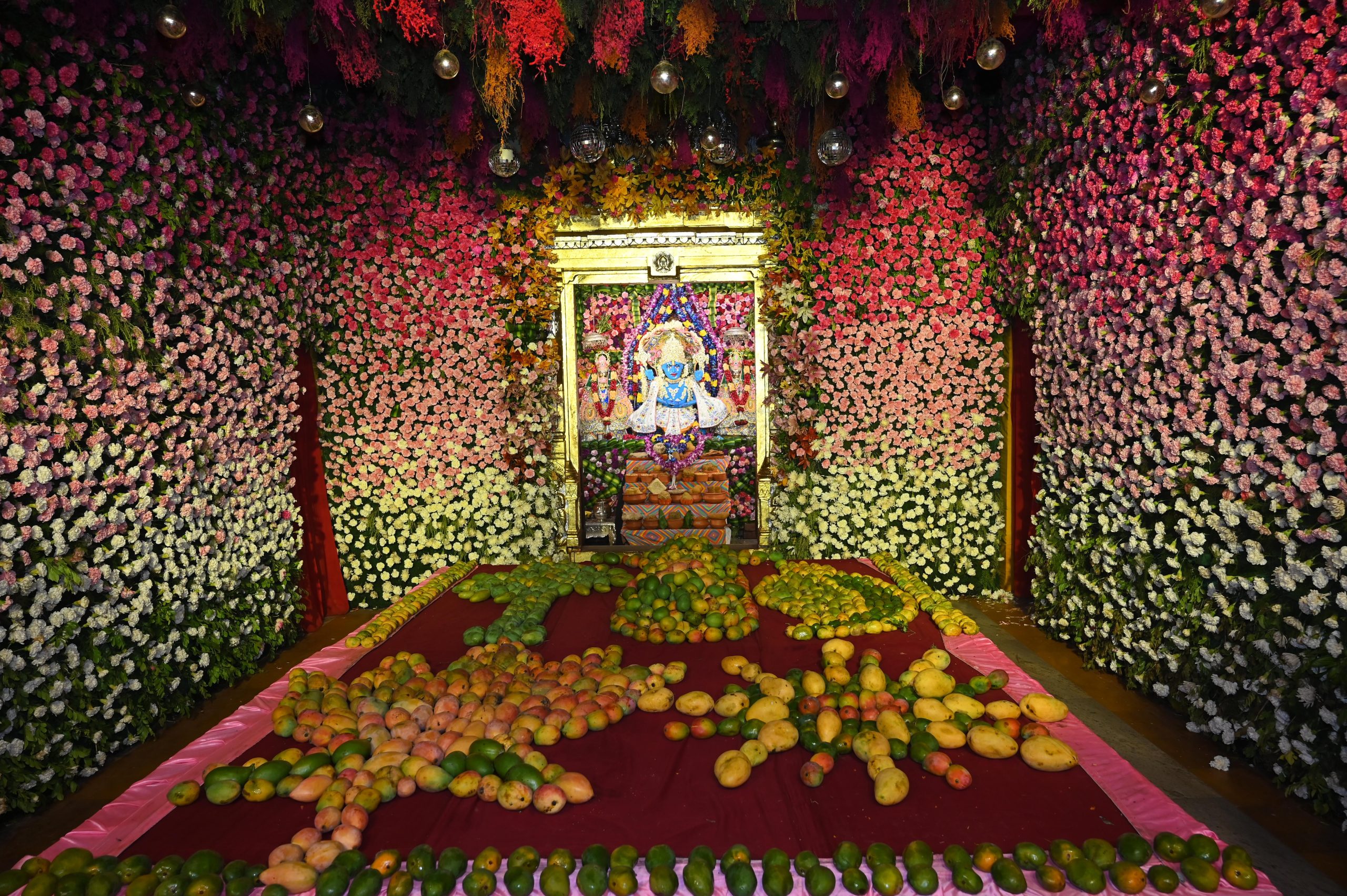 ठाकुर श्री कल्लाजी के माध्यम से कल्याण नगरी एवं यहां के वाशिंदे भाग्यशाली हैं। जहां के राजाधिराज के नित नए ठाठ देखते ही बनते हैं। यू तो उनके नित नये श्रृंगार आकर्षण का केन्द्र होते हैं, लेकिन महाकुंभ के दौरान तो प्रतिदिन उनकी मनोहारी छवि भक्तों को अपलक निहारने को विवश कर देती हैं। महाकुंभ के अष्ठम दिवस बुधवार को देश के प्रमुख चार धाम में से एक उत्तराखण्ड के बद्रीनाथ धाम को वेदपीठ परिसर में शाश्वत दिग्दर्शन कराने का अनुठा एवं स्तुत्य प्रयास वेदपीठ के आचार्यों एवं बटुकों द्वारा किया गया। जिसके फलस्वरूप ठाकुरजी के बद्रीनारायण स्वरूप के दर्शन कर सैकड़ों श्रद्धालु भाव विभोर हो गए। उन्हें घर बैठे गंगा की तरह वेदपीठ पर जगन्नाथ स्वामी, श्रीनाथजी एवं बद्रीनारायण के दर्शन का सौभाग्य प्राप्त हो गया। दूर दराज से आए कई भक्तों ने अपने आराध्य के अनुपम स्वरूप एवं महाकुंभ की समूचित व्यवस्थाओं को देखकर यह विचार व्यक्त किए कि वास्तव में ठाकुरजी के ठाठ तो कल्याण नगरी में ही देखने को मिलते हैं। इस पावन अवसर पर छप्पनभोग के रूप में ठाकुरजी को मौसमी फल के रूप में फलों के राजा आम की 17 किस्मों का भोग धराया गया। सतरंगी फूलों की झांकी के बीच आम का भोग एवं बद्रीनारायण का स्वरूप त्रिवेणी संगम के समकक्ष भक्तों के लिए विशेष आकर्षण का केन्द्र रहा।