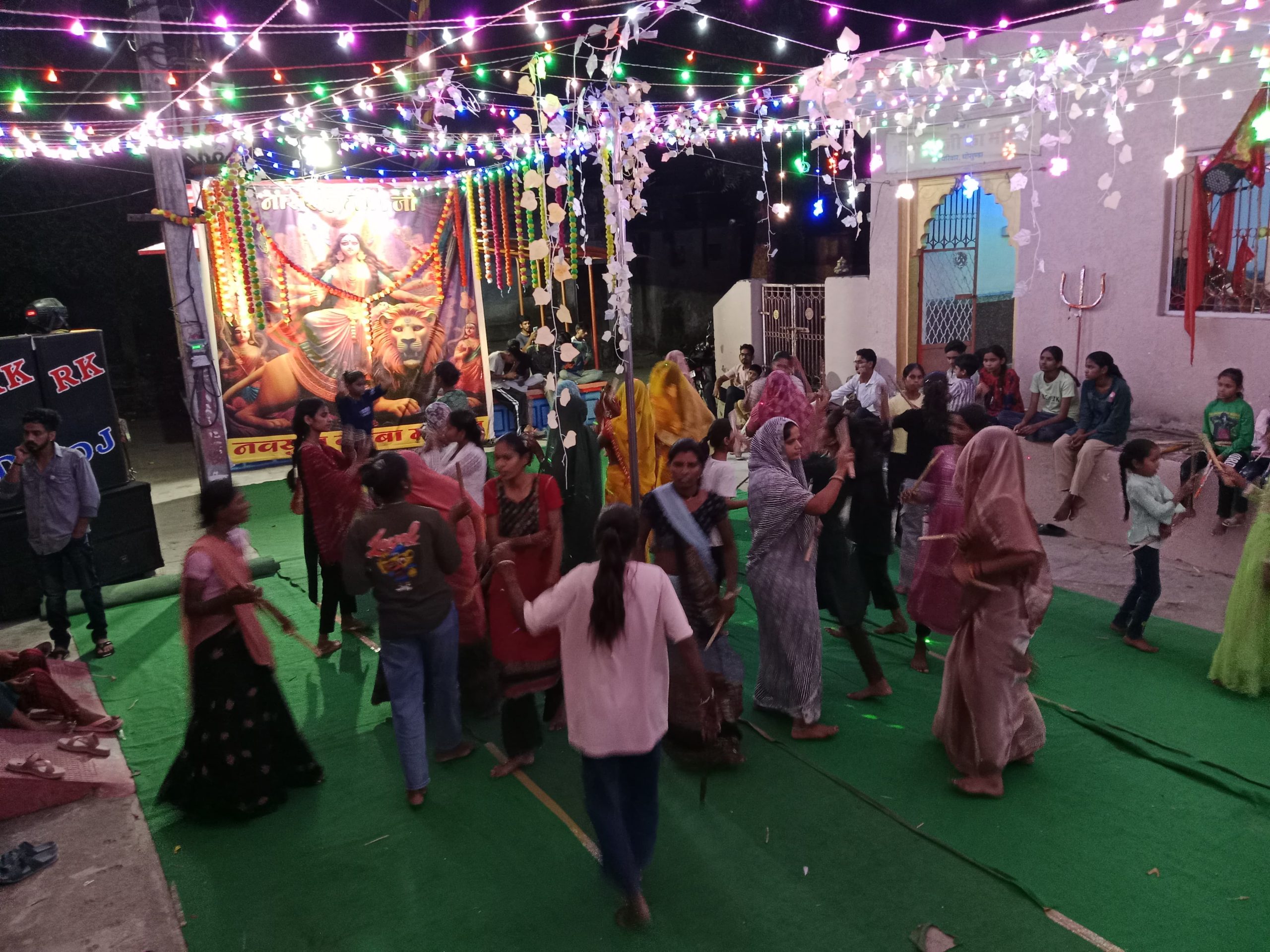24 News Update निम्बाहेडा कविता पारख। घोसुण्डा गांव में शारदीय नवरात्रि पर्व पर नव दुर्गा गरबा मंडल रेगर समाज घोसुण्डा द्वारा गरबा डांडिया नृत्य का आयोजन किया गया इस अवसर पर नव दुर्गा गरबा मंडल के अध्यक्ष देवराज रेगर ने मां दुर्गा की आरती पूजा अर्चना की गरबा डांडिया नृत्य का आयोजन मे मां दुर्गा की रंगीन लाइट डेकोरेशन से पांडाल सजाया गया सभी भक्तजन, मातृशक्ति, बालक और बालिका ने गरबा नृत्य किया कार्यक्रम 9 दिनों तक चलता है नवरात्रि के दौरान मां दुर्गा के 9 रूपों की पूजा की जाती है नवरात्रि के दौरान भक्तजन व्रत और पूजा करते हैं जो एक पारंपरिक और सांस्कृतिक गतिविधि है कार्यक्रम में डेनी नारायण रेगर कैलाश रेगर देवराज रेगर कन्हैया रेगर रवि रेगर ओमप्रकाश रेगर रमेश रेगर कमलेश रेगर किशन रेगर देवीलाल रेगर रतन रेगर अशोक रेगर गोपाल रेगर रामलाल रेगर सिताराम रेगर बाबूलाल रेगर धनराज रेगर ओर सभी गणमान्य लोग उपस्थित थे मीडिया प्रभारी कैलाश चन्द्र जीनगर ने बताया कि इस अवसर पर गरबा डांडिया नृत्य में सभी भक्तजन ने मां शेरावाली का आशीर्वाद प्राप्त किया।