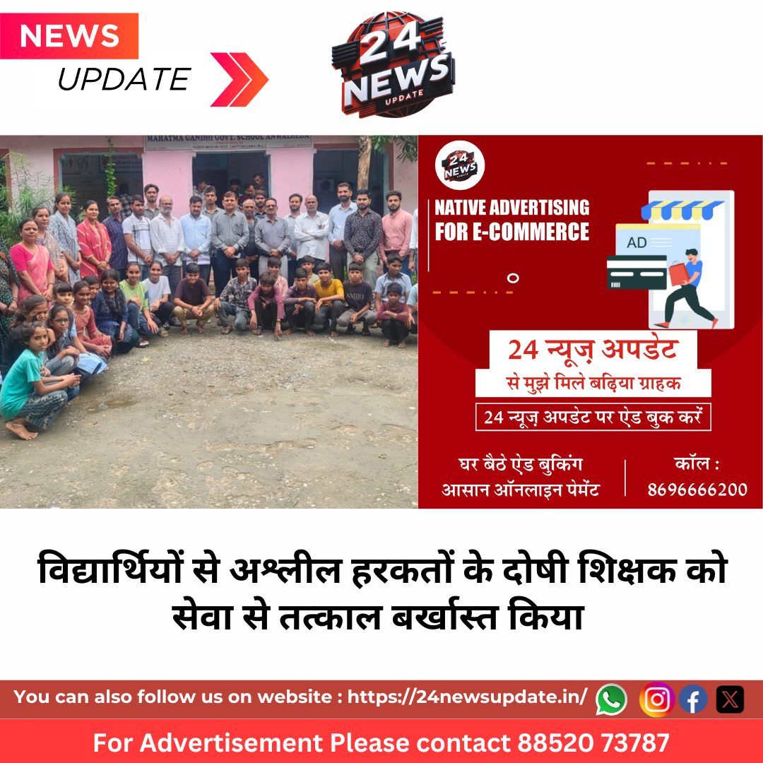 24 News Update. चित्तौड़गढ़, 19 जुलाई। महात्मा गांधी राजकीय विद्यालय, आंवलहेड़ा (ब्लॉक बेगूं) में पदस्थापित शिक्षक शंभूलाल धाकड़ को विद्यार्थियों के साथ अश्लील हरकतें करने, यौन उत्पीड़न, अप्राकृतिक कृत्य और वीडियो बनाने जैसे गंभीर आरोपों में दोषी पाए जाने के बाद राज्य सेवा से पदच्युत कर दिया गया है।यह कठोर कार्रवाई विद्यार्थियों और अभिभावकों द्वारा दी गई शिकायतों तथा उपलब्ध वीडियो साक्ष्यों के आधार पर गठित जांच समिति की त्वरित रिपोर्ट के बाद की गई। जांच में शिक्षक धाकड़ द्वारा किया गया व्यवहार राजस्थान सिविल सेवा (आचरण) नियमों का घोर उल्लंघन पाया गया।शिकायतों की गंभीरता को देखते हुए संबंधित शिक्षक के विरुद्ध भारतीय न्याय संहिता 2023 एवं पॉक्सो अधिनियम की संगत धाराओं में प्राथमिकी दर्ज की गई, और वर्तमान में वे पुलिस अभिरक्षा में हैं। विभागीय जांच में दोष सिद्ध होने के बाद उनके विरुद्ध सख्त प्रशासनिक कार्रवाई की गई।जिला शिक्षा अधिकारी (मुख्यालय) माध्यमिक, चित्तौड़गढ़ द्वारा राजस्थान सिविल सेवा (वर्गीकरण, नियंत्रण एवं अपील) नियम 1958 के नियम 19(ii) के अंतर्गत कार्रवाई करते हुए आरोपी को राजकीय सेवा के लिए अयोग्य घोषित कर दिया गया है तथा उन्हें तत्काल प्रभाव से सेवा से पृथक कर दिया गया है। Share this: Share on X (Opens in new window) X Share on Facebook (Opens in new window) Facebook More Email a link to a friend (Opens in new window) Email Share on WhatsApp (Opens in new window) WhatsApp Like this:Like Loading... Related Discover more from 24 News Update Subscribe to get the latest posts sent to your email. Type your email… Subscribe Post navigation नीमच नारकोटिक्स अफसर और दलाल रिश्वत मामले में गिरफ्तार: एक करोड़ मांगे, 53 लाख में तय हुआ सौदा, 44 लाख ले चुके थे आरोपी चित्तौड़गढ़ रेलवे स्टेशन के बाहर दो साधु भिड़े, एक घायल होकर सड़क पर लेटा, हंगामा कर जाम लगाया