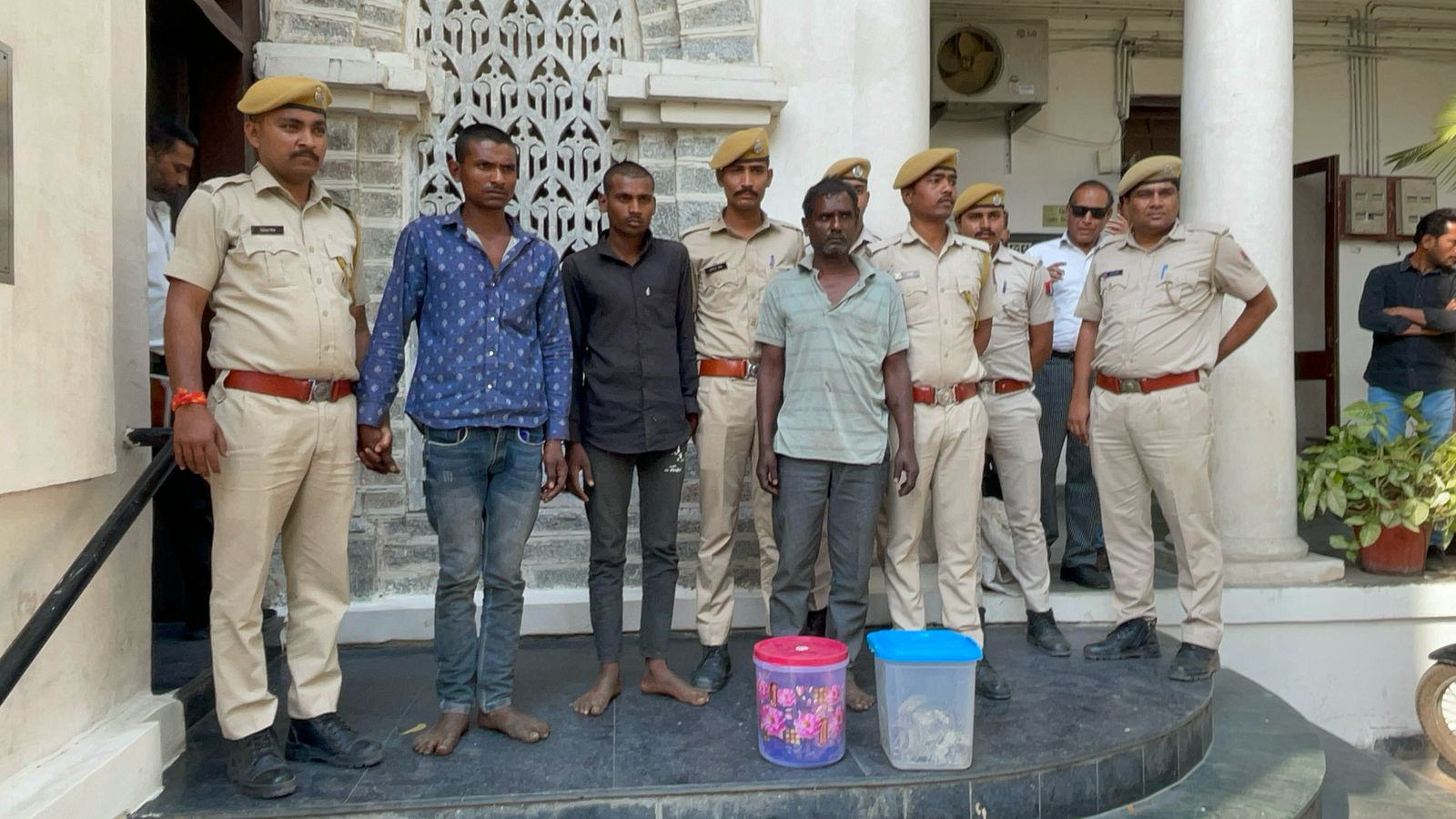 कानोड में अनुपम इलेक्ट्रिकल दुकान में चोरी: 48 घंटे में खुलासा, 3 गिरफ्तार 24 News update udaipur गिरफ्तार लक्ष्मण लाल मीणा कुख्यात 007 गैंग का सदस्य निकला, जिसने अपने शरीर पर धारा 302 मर्डर, “एक जान 100 दुश्मन” जैसे टैटू गुदवा रखे हैं। मुख्य आरोपी कालुलाल भोई पर पहले से चोरी, लूट और मारपीट के 10 से अधिक केस दर्ज हैं। 16 मार्च की रात 3:15 AM पर चार बदमाशों ने बस स्टैंड कानोड पर स्थित अनुपम इलेक्ट्रिकल दुकान का शटर तोड़कर 150 किलो चांदी, 20 तोला सोना और 2.5 लाख रुपये नकद उड़ा लिए। यह वारदात बड़ी ही सुनियोजित तरीके से अंजाम दी गई। मुख्य आरोपी कालुलाल भोई ने पिछले एक साल से अनुपम इलेक्ट्रिकल दुकान की रेकी कर रखी थी। उसने पूरे बाजार में लगे CCTV कैमरों की स्थिति को पहले ही समझ लिया था और ऐसा रूट चार्ट तैयार किया जिससे वे कैमरों में कैद न हो सकें। रात 3:15 बजे चारों बदमाश मोटरसाइकिल पर सवार होकर दुकान के पास पहुंचे। उन्होंने दुकान के शटर को लोहे की रॉड और अन्य तकनीकी उपकरणों की मदद से खोला और अंदर घुस गए। अंदर जाने के बाद उन्होंने सीधे लोकर को निशाना बनाया, जिसमें बड़ी मात्रा में सोने-चांदी के जेवरात और नकदी रखी थी। जब वे चोरी को अंजाम दे रहे थे, तभी पुलिस गश्ती दल का वाहन उस इलाके से गुजरा। इससे घबराकर उन्होंने जो हाथ लगा, उसे लेकर तुरंत भागने का फैसला किया। वे मोटरसाइकिल वहीं छोड़कर पैदल ही जंगल की ओर भाग गए। सीसीटीवी फुटेज, साइबर सेल और मुखबिर तंत्र की मदद से पुलिस को पता चला कि चोरी में इस्तेमाल मोटरसाइकिल लक्ष्मण लाल निवासी डुमातालाब चला रहा था। इसके बाद जांच में कालुलाल भोई का नाम सामने आया, जो कानोड थाने का हिस्ट्रीशीटर है। थानाधिकारी मुकेश चंद्र खटीक के नेतृत्व में टीम ने लगातार 48 घंटे तक जंगलों में छापेमारी की और तीनों आरोपियों को गिरफ्तार किया। आरोपियों ने चोरी किए जेवरात खेतों में गड्ढा खोदकर, देवरे के नीचे और 100 फीट गहरे कुएं में छिपाए थे। कांस्टेबल दशरथ ने कुएं में उतरकर दो घंटे की मशक्कत के बाद जेवरात बरामद किए। ✅ लक्ष्मण लाल मीणा – 007 गैंग का सदस्य, भींडर निवासी✅ कालुलाल भोई – 10 मामलों में वांछित हिस्ट्रीशीटर✅ किशनलाल मीणा – लसाडिया निवासी, गैंग का सदस्य इस बड़ी कार्रवाई में एसपी योगेश गोयल, एएसपी अंजना सुखवाल, डीएसपी राजेंद्र सिंह जैन, थानाधिकारी मुकेश चंद्र खटीक, साइबर सेल प्रभारी लोकेश रायकवाल, कांस्टेबल दशरथ सहित 37 से अधिक पुलिसकर्मियों ने अहम भूमिका निभाई। क्रम संख्यापुलिसकर्मी का नामपद1योगेश गोयलजिला पुलिस अधीक्षक2अंजना सुखवालअतिरिक्त पुलिस अधीक्षक, खेरवाड़ा3राजेंद्र सिंह जैनपुलिस उप अधीक्षक, वल्लभनगर4मुकेश चंद्र खटीकथानाधिकारी, कानोड5पुनाराम गुर्जरथानाधिकारी, भींडर6लालुरामसहायक उपनिरीक्षक, 