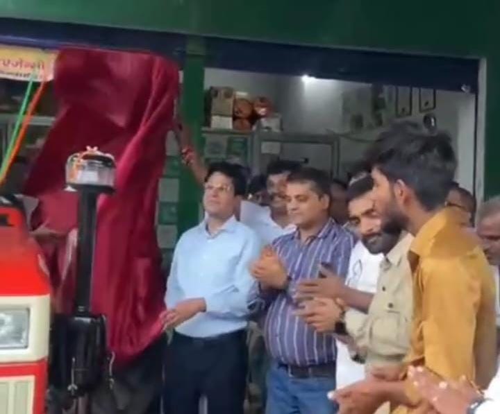 स्वराज कंपनी के ट्रैक्टर के नए मॉडल का ट्रैक्टर से पर्दा उठाकर युवा उद्योगपति पूरन आंजना ने किया लॉन्च’
