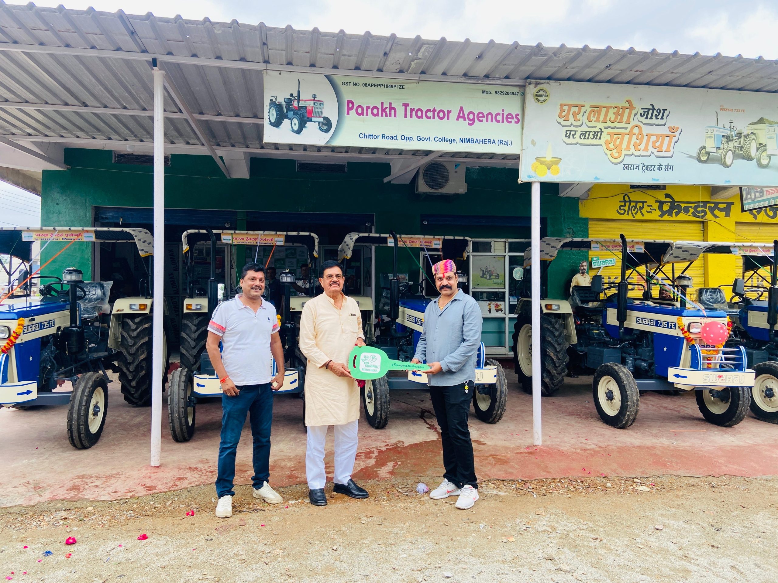 24 News Update निंबाहेड़ा कविता पारख। राजस्थान सरकार के पूर्व सहकारिता मंत्री उदयलाल आंजना ने यहां डॉ भीमराव अंबेडकर राजकीय स्नाकोत्तर महाविद्यालय के सामने स्थित पारख ट्रैक्टर शोरुम पर सोमवार को अपराह्न 3.45 बजे व्यवसाई कार्यों के क्षेत्र में ट्रैक्टर एक अति आवश्यक साधन के स्वराज कंपनी के ट्रैक्टर क्रय करने पर पूर्व सहकारिता मंत्री उदयलाल आंजना ने निंबाहेड़ा क्षेत्र के व्यवसाई लोकेश टांक के एक साथ पांच स्वराज कंपनी के ट्रैक्टर क्रय करने पर चाबियां सौंपते हुए पूर्व सहकारिता मंत्री आंजना ने व्यवसाई लोकेश टांक को नए ट्रैक्टर खरीद की बधाई और शुभकामनाएं दी, और मिठाई खिलाकर मुंह मीठा करवाया।