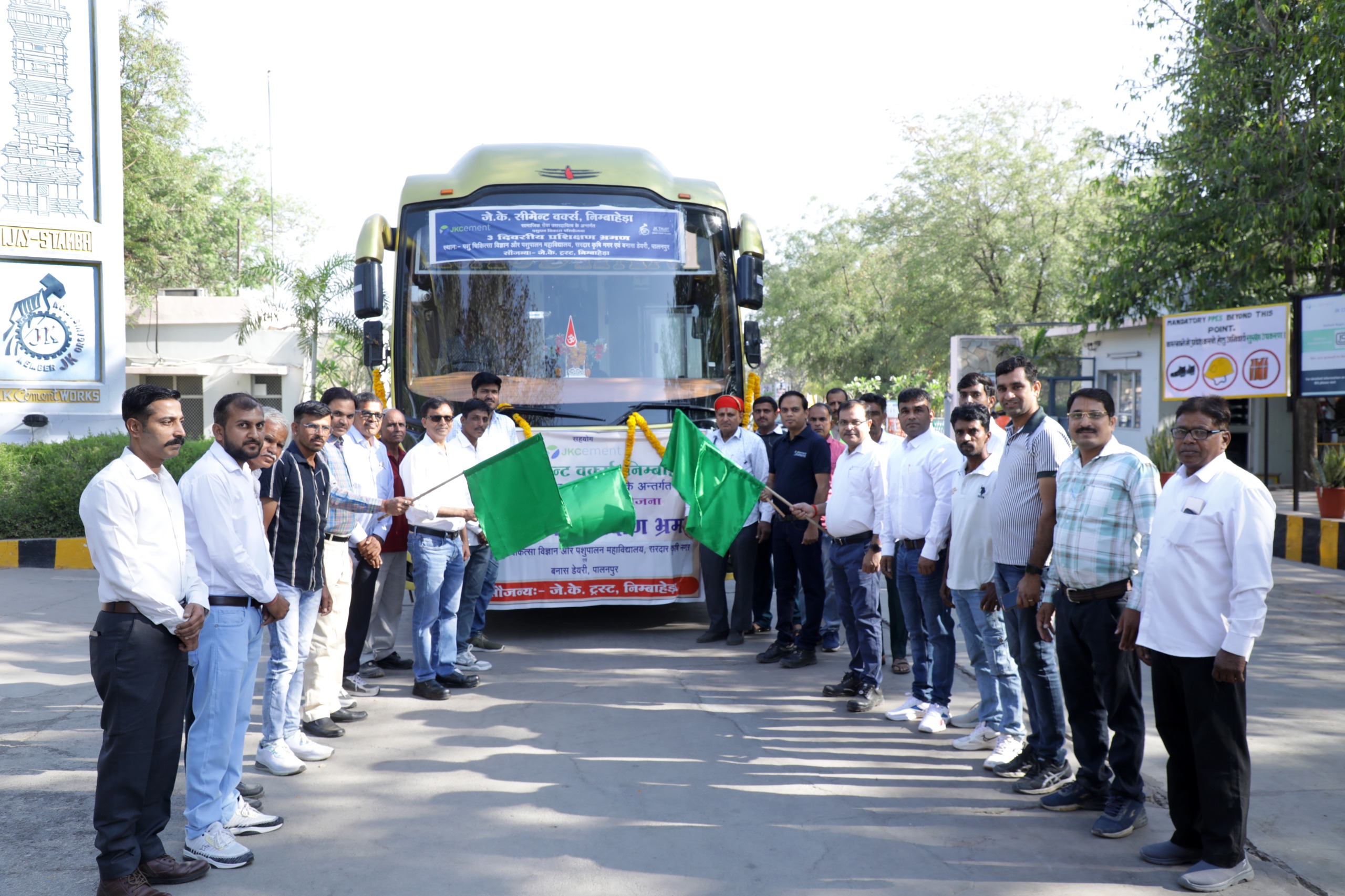 जे.के. सीमेंट निंबाहेड़ा के यूनिट हेड श्री मनीष तोषनीवाल और एचआर हेड श्री प्रभाकर मिश्रा के मार्गदर्शन में हरी झंडी दिखाकर इस प्रशिक्षण भ्रमण का आयोजन किया गया। कार्यदायी संस्था जे.के. ट्रस्ट निंबाहेड़ा द्वारा 60 पशुपालकों का चयन कर उन्हें निंबाहेड़ा से पशु चिकित्सा विज्ञान एवं पशुपालन महाविद्यालय, सरदार कृषि नगर और बनास डेयरी – पालनपुर के लिए रवाना किया गया।