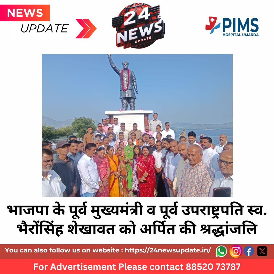 24 News Update उदयपुर। राजस्थान के जन जन के लाडले नेता, प्रदेश के पूर्व मुख्यमंत्री एवं देश के पूर्व उपराष्ट्रपति स्व. भैरोंसिंह शेखावत जी की जन्म जयंती के अवसर पर भारतीय जनता पार्टी शहर जिला उदयपुर द्वारा प्रतिमा स्थल रानी रोड फतहसागर पर पुष्पांजलि कार्यक्रम आयोजित किया गया।