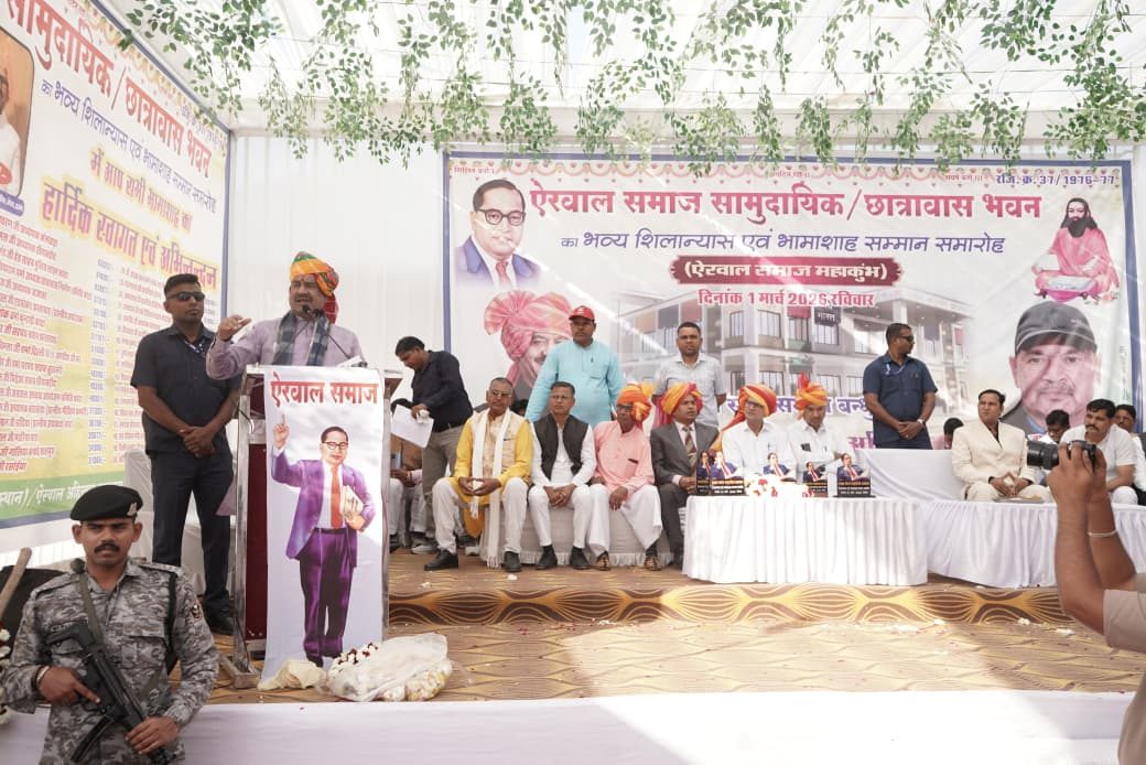 ऐरवाल समाज का मुख्य धारा में लाने के लिए सभी प्रकार से हमेशा सहयोग करने के लिए तत्पर – ओम बिडला 24 News Update भीलवाड़ा ज़िले में प्रान्तीय ऐरवाल महासभा, राजस्थान के तत्वावधान में हाडौती संभाग का ऐरवाल समाज का प्रथम सामुदायिक/छात्रावास भवन का शिलान्यास लोकसभा स्पीकर ओम बिरला के मुख्य आतिथ्य एवं प्रान्तीय ऐरवाल महासभा के अध्यक्ष जुगल सर एवं छात्रावास निर्माण समिति के अध्यक्ष सियाराम की अध्यक्षता में थेकडा का भैरूजी, कोटा में सम्पन्न में हुआ। समारोह में विशिष्ठ अतिथि अहिरवार समाज संघ, भारत के राष्ट्रीय अध्यक्ष डॉ. जगदीश सुर्यवंशी, राष्ट्रीय उपाध्यक्ष डॉ. हनुमन्त सिंह, बोद्ध, राष्ट्रीय लीगल सैल प्रभारी एडवोकेट आर.आर. बाघ, राष्ट्रीय कार्यवाहक अध्यक्ष प्रभुलाल ऐरवाल एडवोकेट, प्रभम भामाशाह एवं रैदास महासभा के प्रदेश अध्यक्ष डां रामस्वरूप अहिरवार, प्रान्तीय ऐरवाल महासभा के संरक्षक एवं पूर्व अध्यक्ष मोहनलाल धोलिया, संस्थापक एवं पूर्व अध्यक्ष रामचन्द्र रेडिया, प्रान्तीय सचिव बाबूलाल अहिरवाल, प्रदेश वरिष्ठ उपाध्यक्ष राधाकिशन खण्डिया आदि मंचासीन रहे।गुरु रविदास मंदिर निर्माण समिति त्रिवेणी संगम के सचिव जीवन ऐरवाल व उपाध्यक्ष भेरूलाल, कैलाश कवररलाल दीपक को समिति द्वारा उत्कृष्ट कार्य करने पर स्वागत किया।मीडिया प्रभारी जीवन ऐरवाल प्रदेश अध्यक्ष जुगल सर ने साफा बंधवाकर कर स्वागत भी किया।प्रदेश अध्यक्ष जुगल सर ने बताया कि शिलान्यास समारोह के मुख्य अतिथि स्पीकर ओम ने कहा कि ऐरवाल समाज से मेरा काफी नजदीक का सम्बन्ध रहा है, जिस प्रकार ऐरवाल समाज ने समय-समय और हर मौड पर मेरा सहयोग किया है, इएलिए मै सामुदायिक भवन पूरा होने तक हर प्रकार की मद्द करता रहूंगा। समारोह विशिष्ठ अतिथि अहिरवार समाज संघ के राष्ट्रीय अध्यक्ष डॉ. जगदीश सुर्यवंशी ने कहा कि समाज को एकता के साथ कार्य करने की आवश्यता है और समाज को आपना राजनैतिक जनाधार तैयार करने के लिए हर मोर्चे पर समाज की भागीदारी आवश्यक है। राष्ट्रीय लीग सैल प्रभारी एडवोकेट आर.आर. बाघ ने ऐरवाल जाति को राजस्थान की सूची में जुडवाने हेतु प्रयास करने पर जोर दिया। अध्यक्षता कर रहे जुगल सर ने सभी समाज बन्धुओं को सामुदायिक भवन निर्माण हेतु ज्यादा से ज्यादा सहयोग करने की अपील की वही राष्ट्रीय कार्यवाहक अध्यक्ष प्रभुलाल ऐरवाल एडवोकेट ने छात्रावास निर्माण हेतु डोर-2-डोर सहयोग राशि एकत्रित करने की बात कही।मिडिया प्रभारी जीवन ऐरवाल ने बताया कि मुख्य अतिथि स्पीकर ओम बिडला द्वारा सामुदायिक भवन/छात्रावास भवन का शिलान्यास समाज की गरिमामय उपस्थित फीता काटकर किया। शिलान्यास उपरान्त समाज भामाशहों द्वारा 25 लाख की घोषणा की गयी जिसमें जगदीश नरवर छबड
