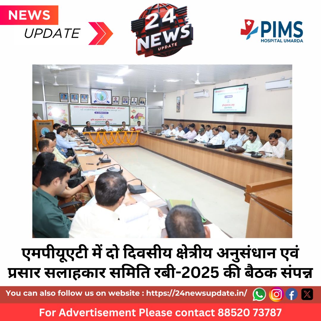 24 news Update उदयपुर। महाराणा प्रताप कृषि एवं प्रौद्योगिकी विश्वविद्यालय (एमपीयूएटी), उदयपुर के अनुसंधान निदेशालय सभागार में संभाग चतुर्थ-अ की दो दिवसीय क्षेत्रीय अनुसंधान एवं प्रसार सलाहकार समिति (रबी-2025) की बैठक आयोजित हुई। बैठक की अध्यक्षता विश्वविद्यालय के अनुसंधान निदेशक ने की।