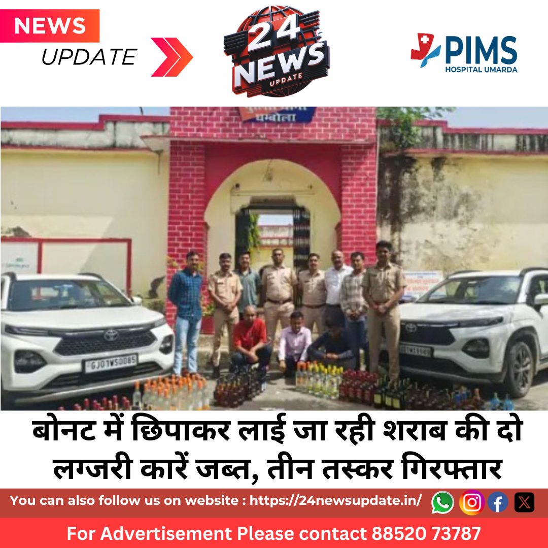 सूचना के आधार पर पुलिस ने थाने के बाहर नाकेबंदी की। इस दौरान दो लग्जरी कारें आगे-पीछे आती हुई दिखाई दीं। पुलिस ने दोनों को रोककर तलाशी ली, तो कारों के बोनट में शराब छिपाई हुई पाई गई। एक कार से 69 बोतल और दूसरी से 71 बोतल शराब बरामद हुई।