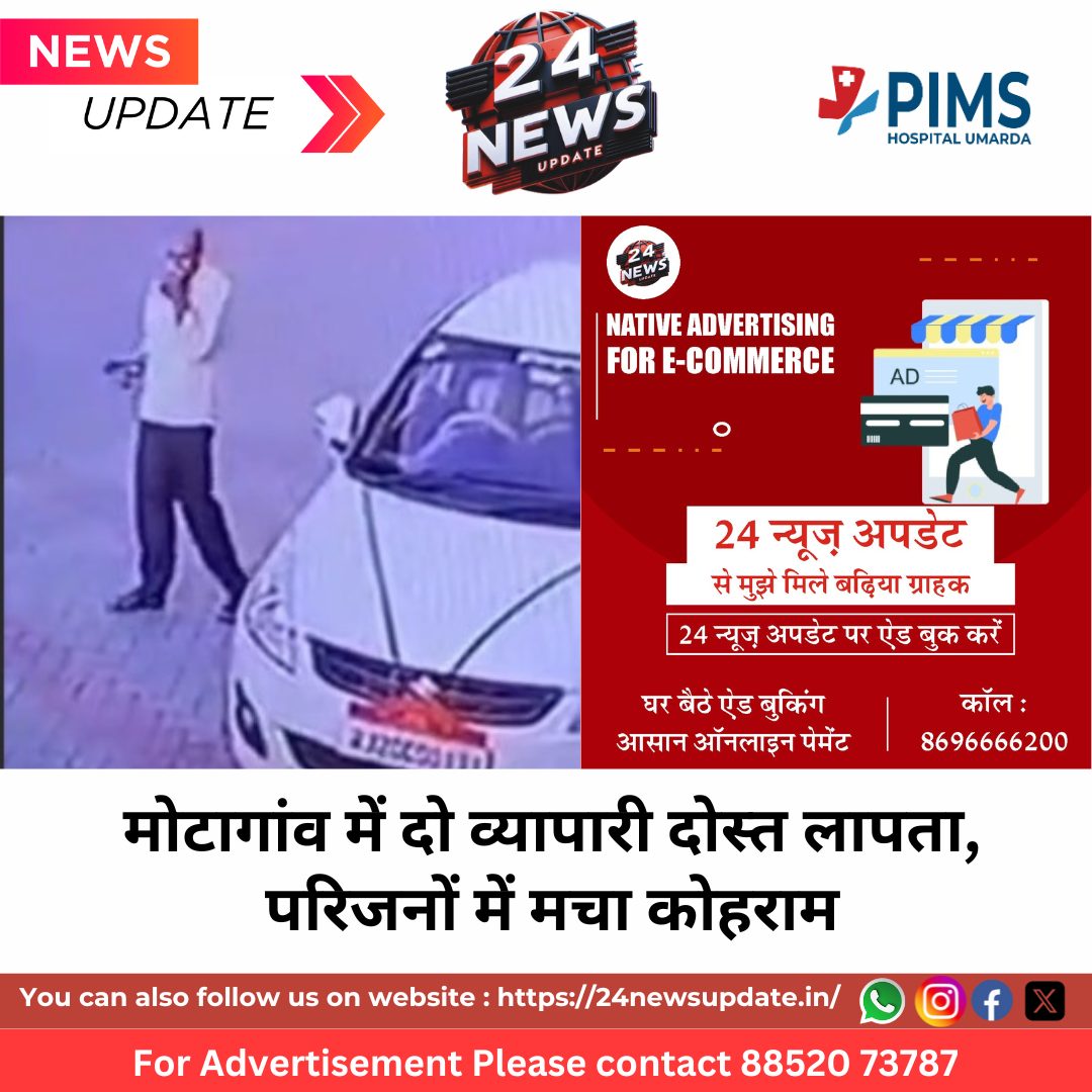 24 News Update बांसवाड़ा। बांसवाड़ा जिले के मोटागांव कस्बे में दो व्यापारी दोस्त हर्षित सेवक और सुरेश सोनी सोमवार सुबह से लापता हैं। हर्षित ई-मित्र की दुकान और सुरेश किराना दुकान चलाते हैं। दोनों पड़ोसी भी हैं। बताया गया कि उन्होंने घर से साबला जाकर आने का कहा था, लेकिन दो दिन बीत जाने के बाद भी उनका कोई सुराग नहीं मिला।