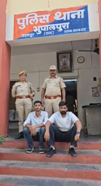 24 News Update उदयपुर, भूपालपुरा: राजस्थान की पर्यटन नगरी उदयपुर और मेवाड़ की सांस्कृतिक छवि को सोशल मीडिया पर बदनाम करने के प्रयास में जुटे दो युवकों को पुलिस ने गिरफ्तार कर लिया है। पुलिस थाना भूपालपुरा क्षेत्र में यह कार्रवाई जिला पुलिस अधीक्षक श्री योगेश गोयल के निर्देश पर की गई।