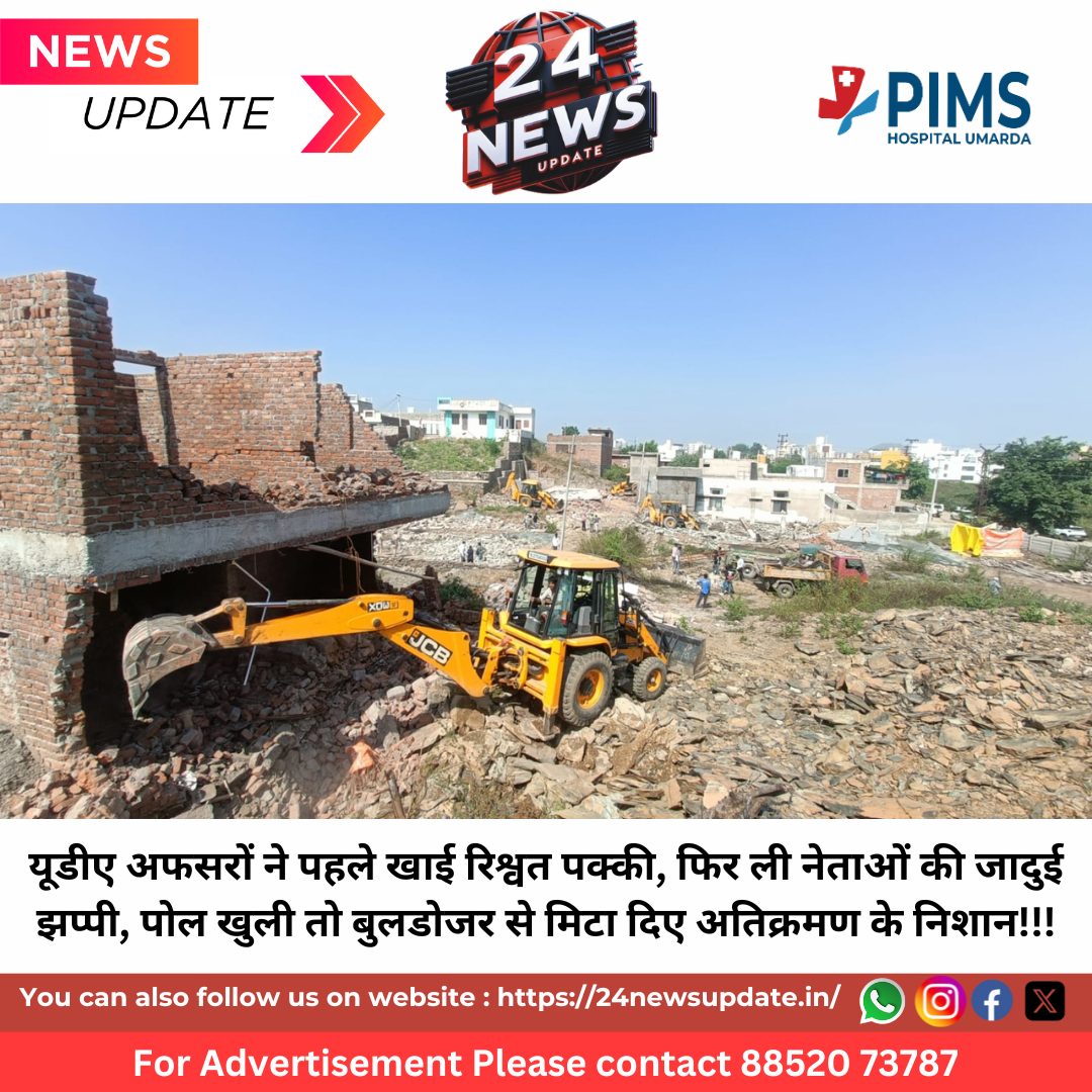 24 न्यूज अपडेट उदयपुर। लेकसिटी में अब सरकारी मिलीभगत और नेताओं के संरक्षण में अवैध निर्माण का खेल खुल्ला खेल फर्रूखाबादी हो चुका है। लाज, शर्म कुछ नहीं बची। पैसा दो अतिक्रमण करो, लाखों के निर्माण कर लो, यूडीए के अफसर झांक कर नहीं देखेंगे। और तो और किसी नेता की चरण वंदना करते हुए आदेश हो गए कि वहां पर चौकीदारी करनी है तो अफसर व उनके मातहतों की फौज वो भी जो हुक्म मेरे आका कहते हुए कर देगी। पूरा इको सिस्टम काम कर रहा है जिसमे ंनेता अवैध कामों को अफसरों के जरिये लीगल करवाता है, अफसर बदले में मनचाही जगह पर ट्रांसफर, पोस्टिंग और अपने लिए ढेर सारा अवैध माल कमाता है। जनता मूर्ख बनती है, सोचती है कि नेता कह रहा है, घर बना दो, लाखों का खर्चा करा दो, अफसर खुद कह रहा है कि बाद में सब सेट करवा देंगे। मगर जब अतिक्रमण हटते हैं तब कोई आड़े नहीं आता। यूडीए की आंखों पर तो लगता है उस पट्टी को बांध देना चाहिए जिसे हाल ही में कानून की देवी की आंखों से हटाया गया है। इतने विशाल पैमाने पर धड़ल्ले से बड़े बड़े निर्माण हो जाते हैं लेकिन इनके जिनके कंधों पर अतिक्रमण रोकने की जिम्मेदारी होती है, वे ही खुद माल वसूली करके आंख बंद कर देते हैं। कभी किसी नेता के गुलाम बनकर खुद अवैध बस्तियां बसाने के झंडाबरदार बन जाते हैं। जब पोल खुल जाती है तो यही लोग बुलडोजर लेकर बेशर्मी से तोड़ने चले जाते हैं। ऐसा ढीठ, महाभ्रष्ट सिस्टम आपको दुनिया में कहीं ढूंढे नहीं मिलेगा जहां पर सब के सब मिले हुए हैं। नेताओं से अफसर की गलबहियां और चरण वंदना, उसके बाद रिश्वत का खुला खेल। कानून का तो जैसे डर ही खत्म हो गया है। नियम कायदे तो ये धुआं में उड़ाने काखेल रोज खेलते है।