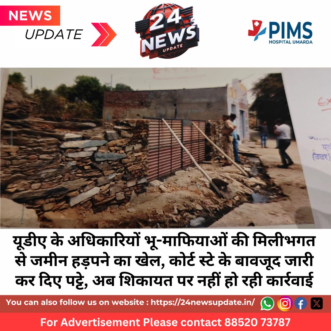 24 न्यूज अपडेट उदयपुर।राजस्व ग्राम बेदला, पटवार क्षेत्र बेदला में स्थित आराजी संख्या 1606 की भूमि पर लंबे समय से काबिज विधवा महिला सीमा बिलौची पुत्री राधेश्याम बिलोची पत्नी स्व लक्ष्मण बिलोची ने आरोप लगाया है कि उनके भूखण्ड पर कोर्ट के स्टे के बावजूद अवैध कब्जा कर पट्टे जारी कर दिए गए हैं। शिकायत पर सुनवाई नहीं हो रही है। प्रार्थी महिला का कहना है कि वर्ष 1998 से उनकी भूमि पर उनका स्वामित्व दर्ज है और राजस्व अभिलेखों में उनका नाम स्पष्ट रूप से दर्ज है।